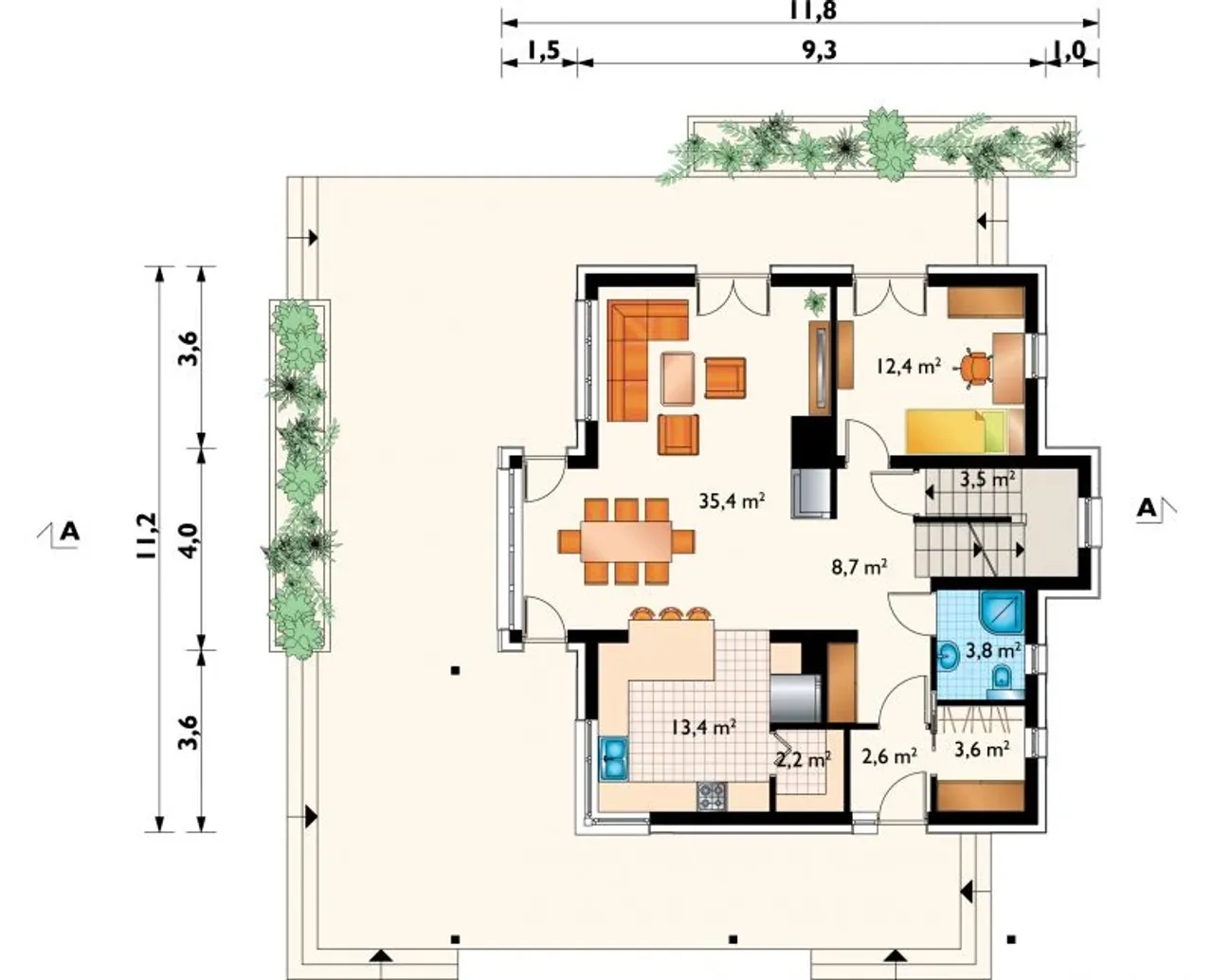| 6. Pokój dzienny + jadalnia | 35,40 m² |