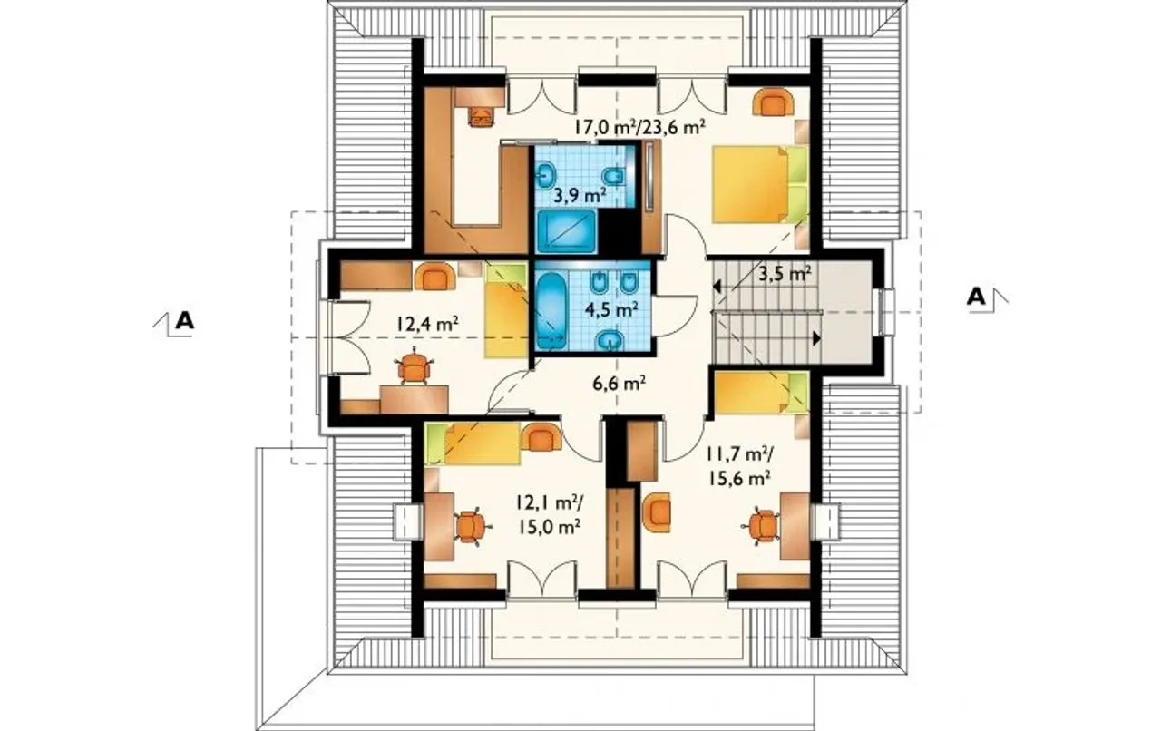 | 8. Sypialnia | 17,00 (23,60) m² |
