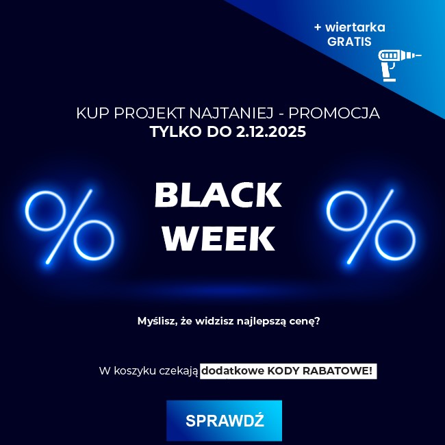 Prezenty obowiązują do 02.12.2025 - wiertarkę otrzyma każdy kto kupi projekt w cenie powyżej 3000 zł, nie limitujemy tego gratisu!