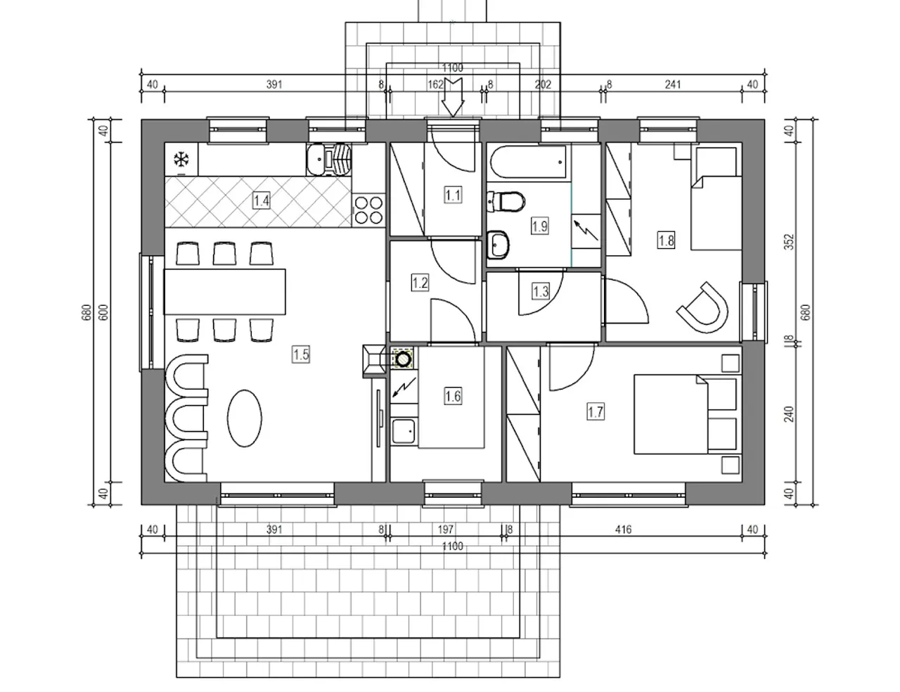 Kupując projekt w technologii murowanej powinieneś budować dom murowany. Zupełna zmiana technologii na szkieletową wymaga przeprojektowania całego budynku ( zmieniają się obciążenia, fundamenty, konstrukcja dachu). Wydamy zgodę na takie przeprojektowanie jednak wiążę się to z dużymi kosztami. Istnieją firmy wykonawcze, które podejmują się zmiany technologii budowy bezpłatnie przy skorzystaniu z ich usług wykonawczych. Zdarza się, że pracownia architektoniczna przygotowuje warianty konkretnego projektu przewidując także inne technologie. Prosimy o sprawdzenie czy istnieje poszukiwana wersja projektu, w zakładce - warianty projektu.
