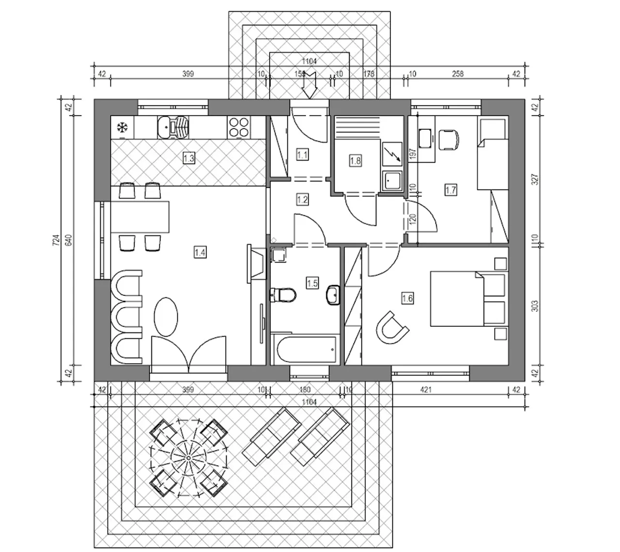 Wypełnij formularz i otrzymaj rysunki w pdf z dokładnymi wymiarami budynku i pomieszczeń (długość, szerokość, wysokość) dla projektu 003 ET 62 MINI - domek Miodowy 62