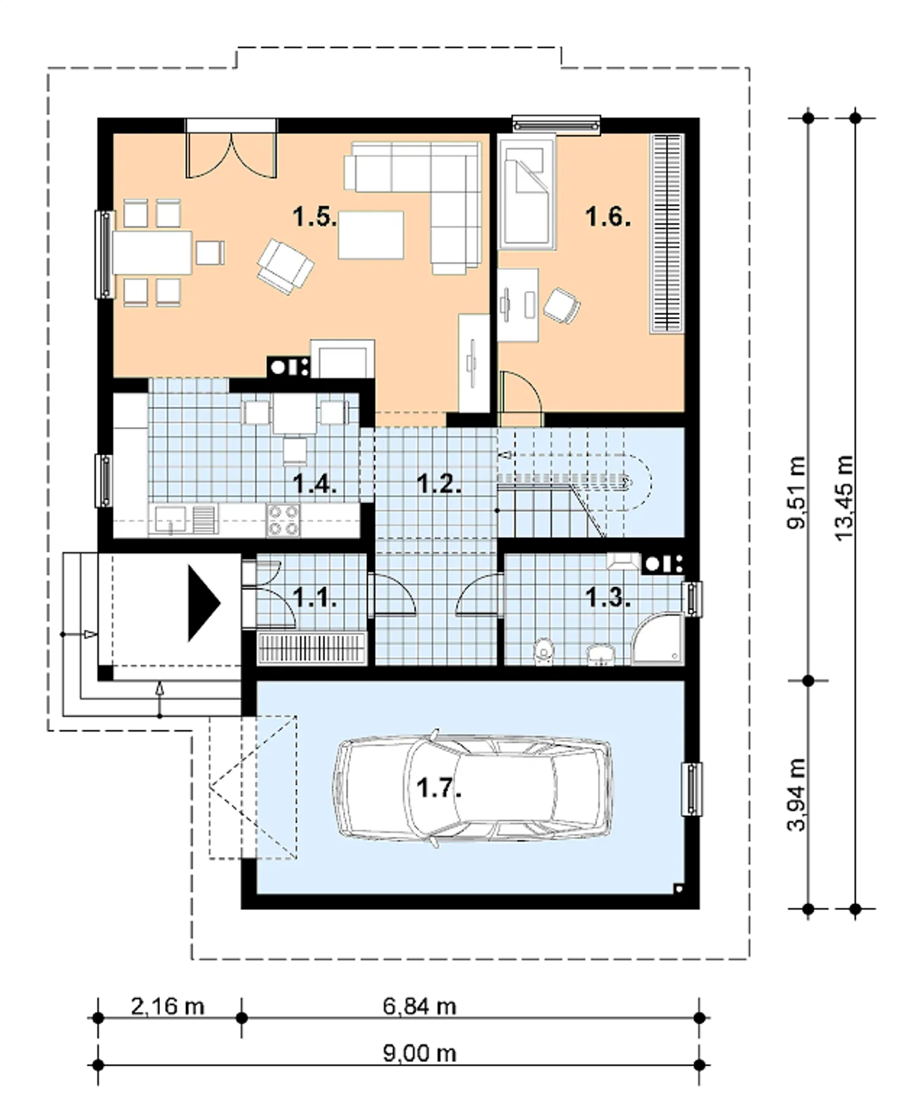 Wypełnij formularz i otrzymaj rysunki w pdf z dokładnymi wymiarami budynku i pomieszczeń (długość, szerokość, wysokość) dla projektu A-103 szkieletowy