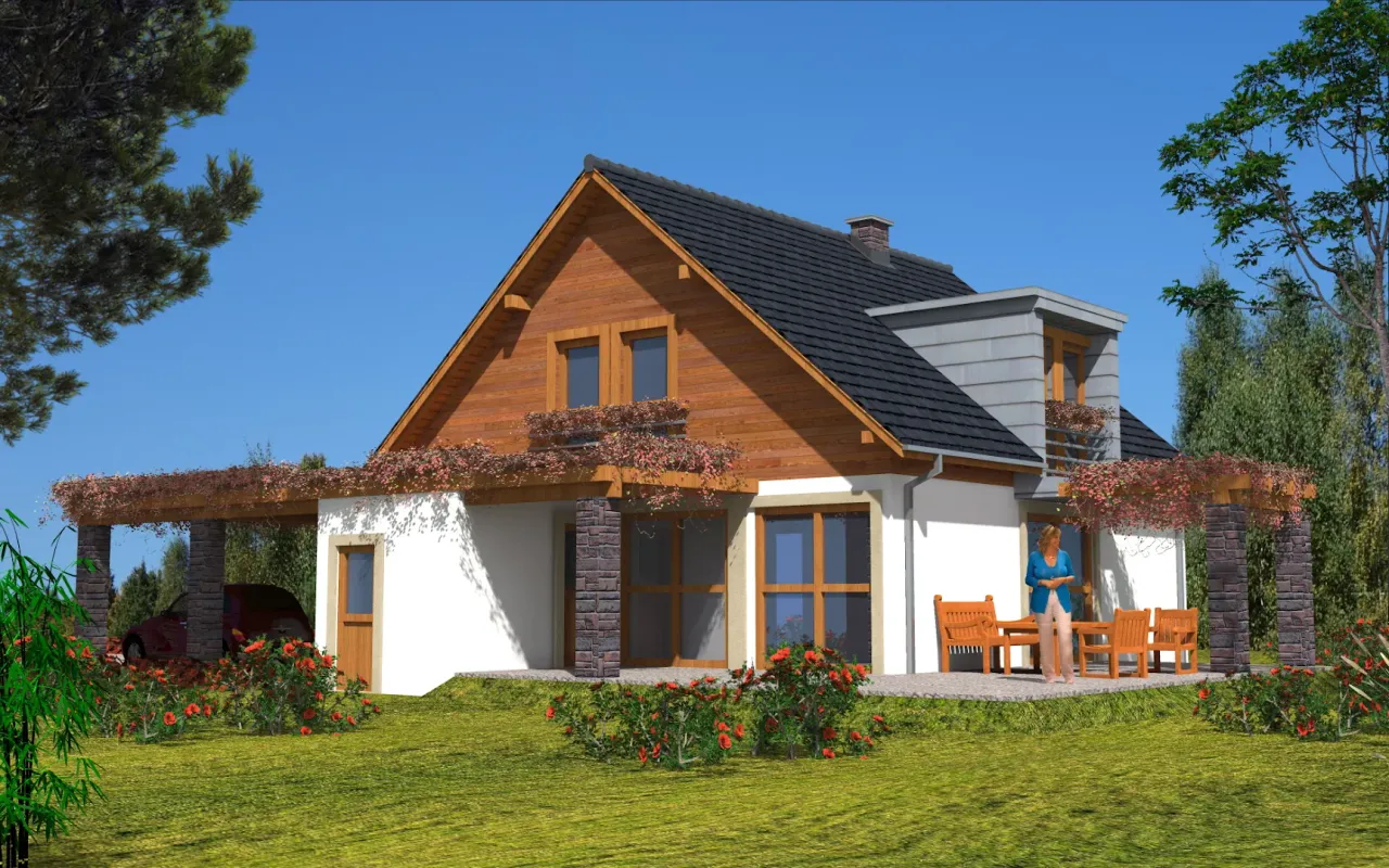 Kupując projekt w technologii murowanej powinieneś budować dom murowany. Zupełna zmiana technologii na szkieletową wymaga przeprojektowania całego budynku ( zmieniają się obciążenia, fundamenty, konstrukcja dachu). Wydamy zgodę na takie przeprojektowanie jednak wiążę się to z dużymi kosztami. Istnieją firmy wykonawcze, które podejmują się zmiany technologii budowy bezpłatnie przy skorzystaniu z ich usług wykonawczych. Zdarza się, że pracownia architektoniczna przygotowuje warianty konkretnego projektu przewidując także inne technologie. Prosimy o sprawdzenie czy istnieje poszukiwana wersja projektu, w zakładce - warianty projektu.