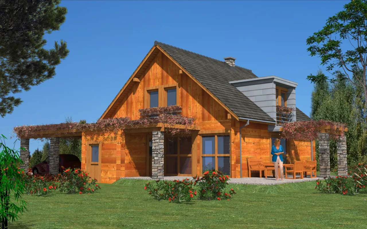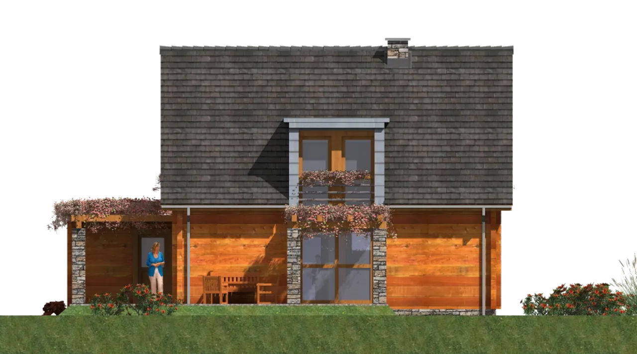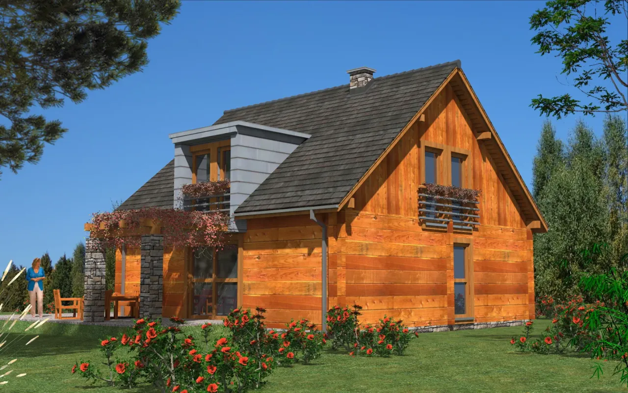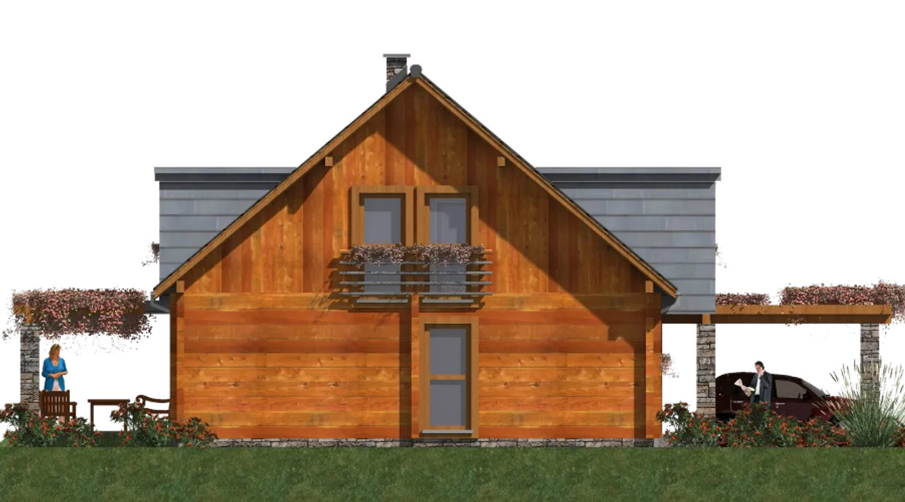 parterowy+poddasze Dom jest bardzo nietypowy. Pierwszy raz widzę dom z bali, który jest zaprojektowany w stylu nowoczesnym. Całość jest bardzo oryginalna, głównie ze względu na typ lukarn.