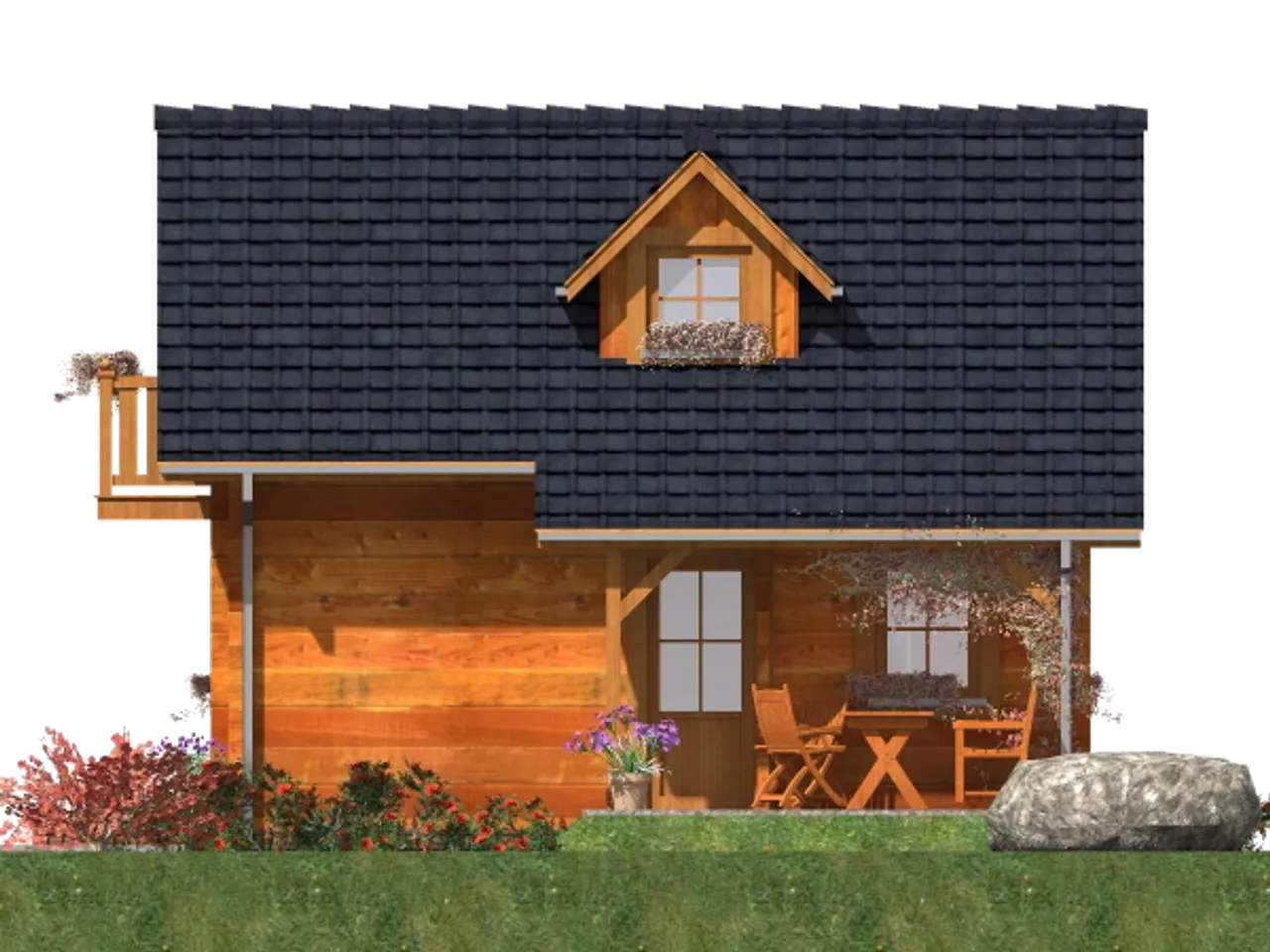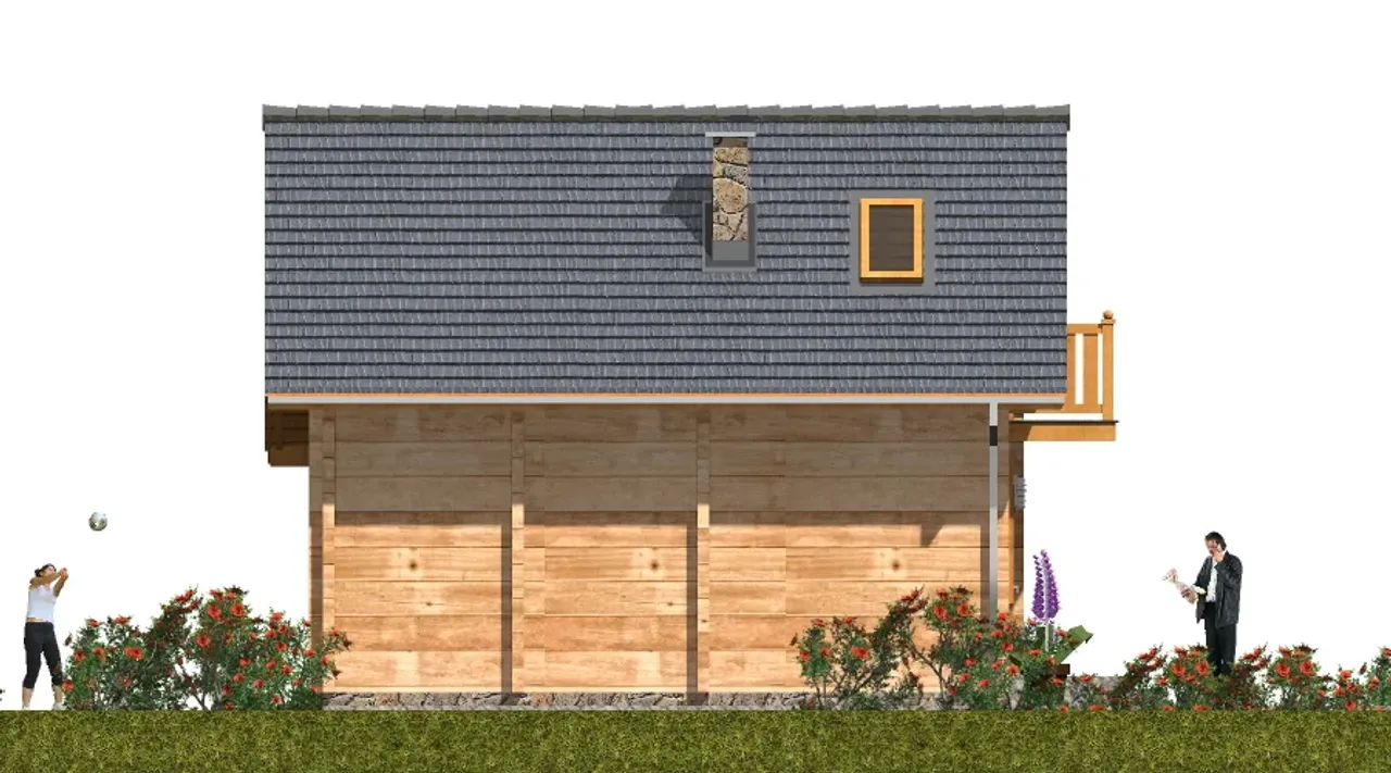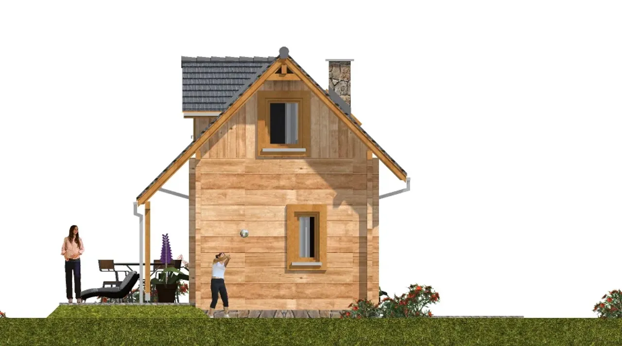A-125 z bali to gotowy projekt wykonanego z bali domu parterowego z poddaszem użytkowym, bez garażu. Projekt domu A-125 z bali jest budynkiem letniskowym o tradycyjnym stylu wykończenia elewacji. Dom wybudowany według tego projektu będzie miał powierzchnię użytkową 34.5, kąt nachylenia dachu 45 stopni i może powstać na działce o szerokości 14.5 m.Projekt A-125 z bali to dom z zadaszynom tarasem, bez piwnicy.