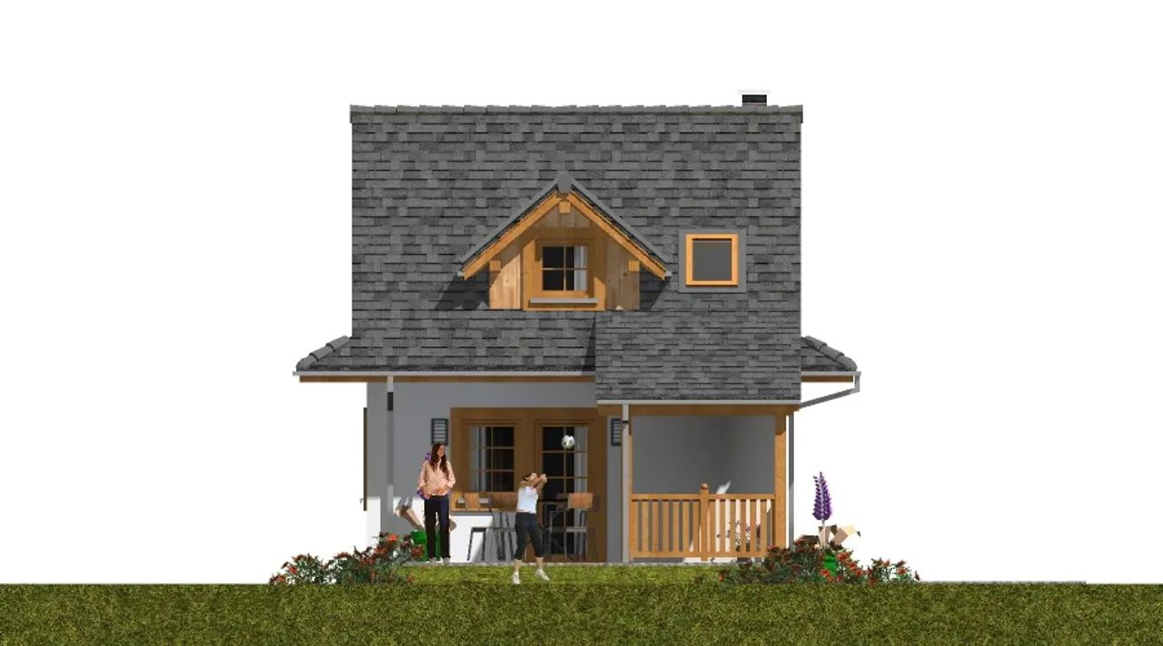 parterowy+poddasze Projekt tego domu prezentuje się naprawdę imponująco, jest to bardzo przestronny i nowoczesny dom, który z pewnością spełni oczekiwania nawet najbardziej wymagających osób. Szczególnie spodobała mi się duży taras oraz otwarta przestrzeń na parterze, która połączy kuchnię, jadalnię i salon w jedno miejsce. Warto też zwrócić uwagę na ekologiczny i trwały charakter budynku, ponieważ jest on zbudowany w technologii szkieletu drewnianego.