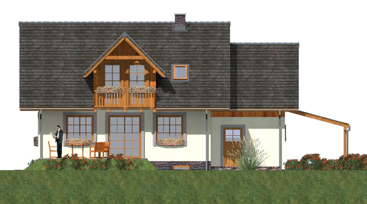 Wypełnij formularz i otrzymaj rysunki w pdf z dokładnymi wymiarami budynku i pomieszczeń (długość, szerokość, wysokość) dla projektu A-143 szkielet drewniany