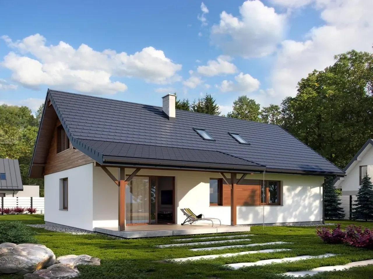 Abra 3 to jednorodzinny, dom parterowy z poddaszem użytkowym. Projekt został rozrysowany na planie litery L, projekt z dwustanowiskowym garażem. Dom przewidziany jest do budowy w technologii szkieletu drewnianego.