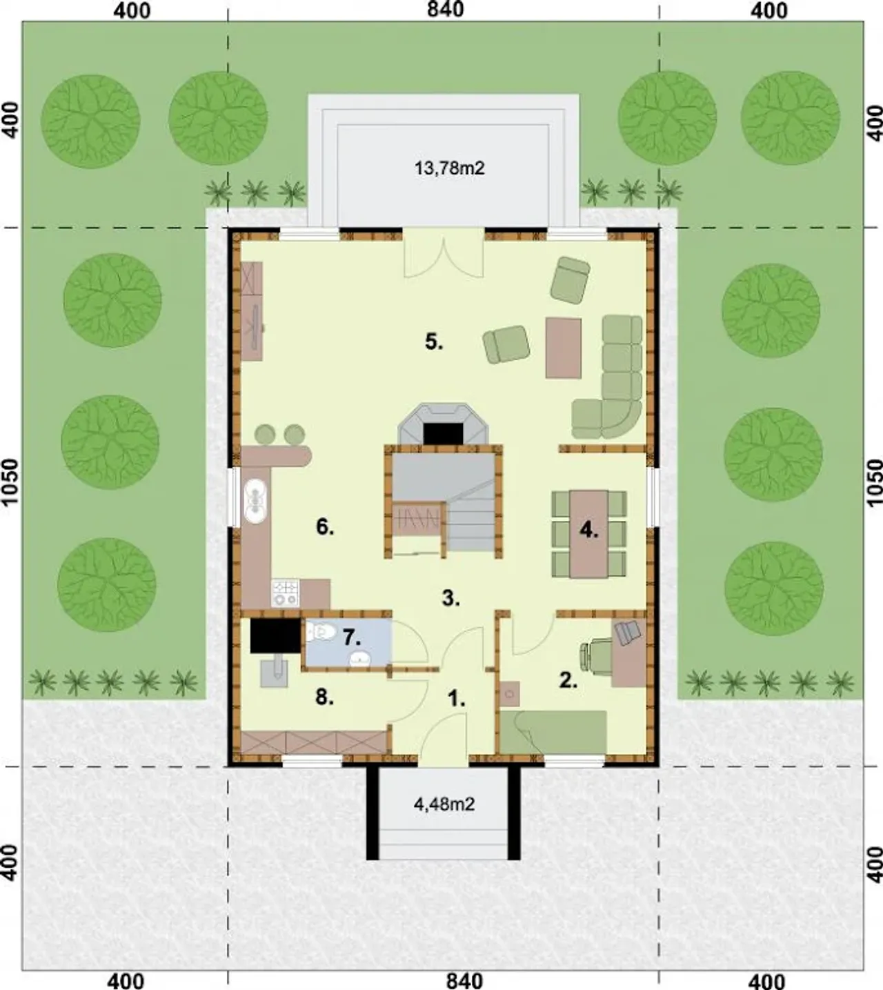 Wypełnij formularz i otrzymaj rysunki w pdf z dokładnymi wymiarami budynku i pomieszczeń (długość, szerokość, wysokość) dla projektu Acapulco szkielet drewniany