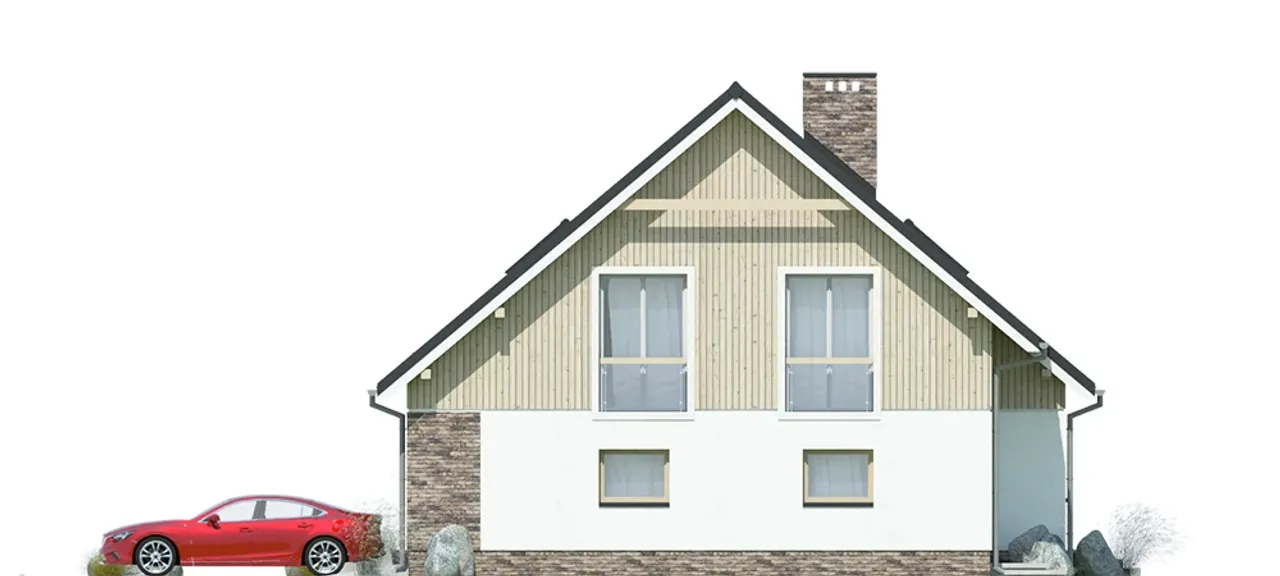 Dom wykonasz w solidnej technologii murowanej ze stropem żelbetowym i drewnianą konstrukcją dachu pokrytą ceramiczną dachówką. Ściana kolankowa o wysokości 110 cm umożliwia wygodne wykorzystanie powierzchni poddasza. Z kolei rolety zewnętrzne, stolarka PVC i segmentowa brama garażowa gwarantują trwałość i znakomitą izolację.