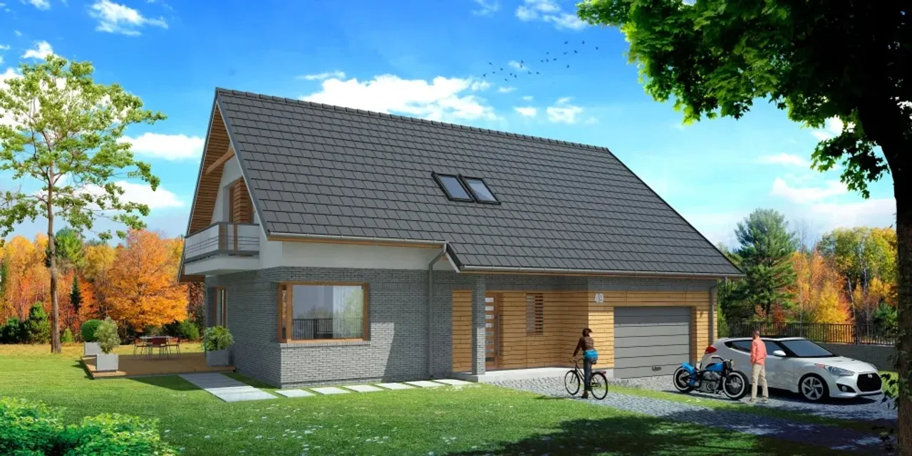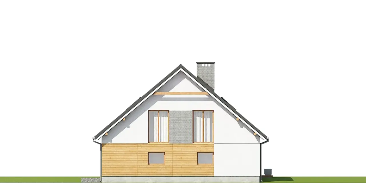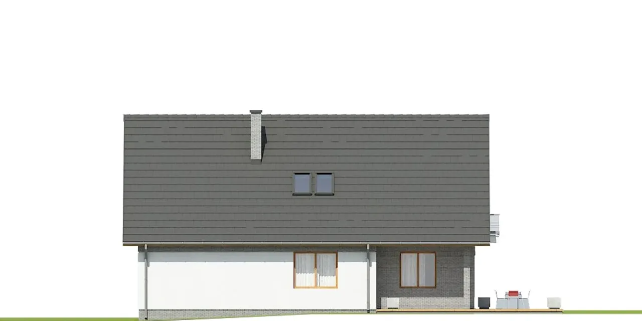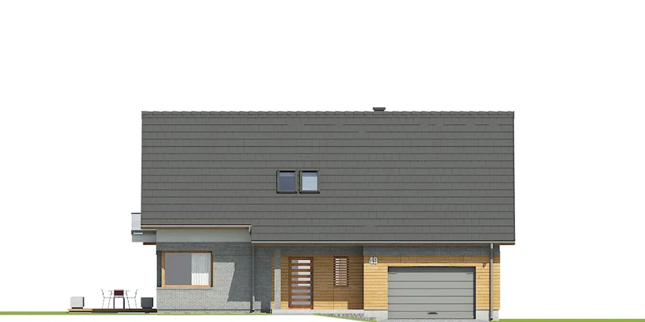 Akcent na nowoczesność i bezpieczeństwo to wyznaczniki tego projektu domu jednorodzinnego. Bryła budynku harmonizuje z przestrzenią miejską oraz podmiejską, a przemyślany układ pomieszczeń pozwoli każdemu członkowi rodziny na wygodne codzienne funkcjonowanie. Dwuspadowy dach, wykonany z drewna i pokryty ceramiczną dachówką, skutecznie chroni wnętrza i tworzy niezawodną przegrodę przed niekorzystną pogodą.