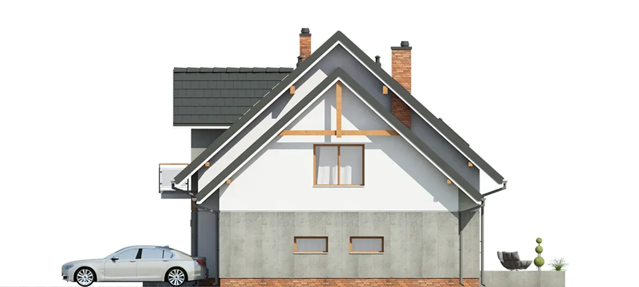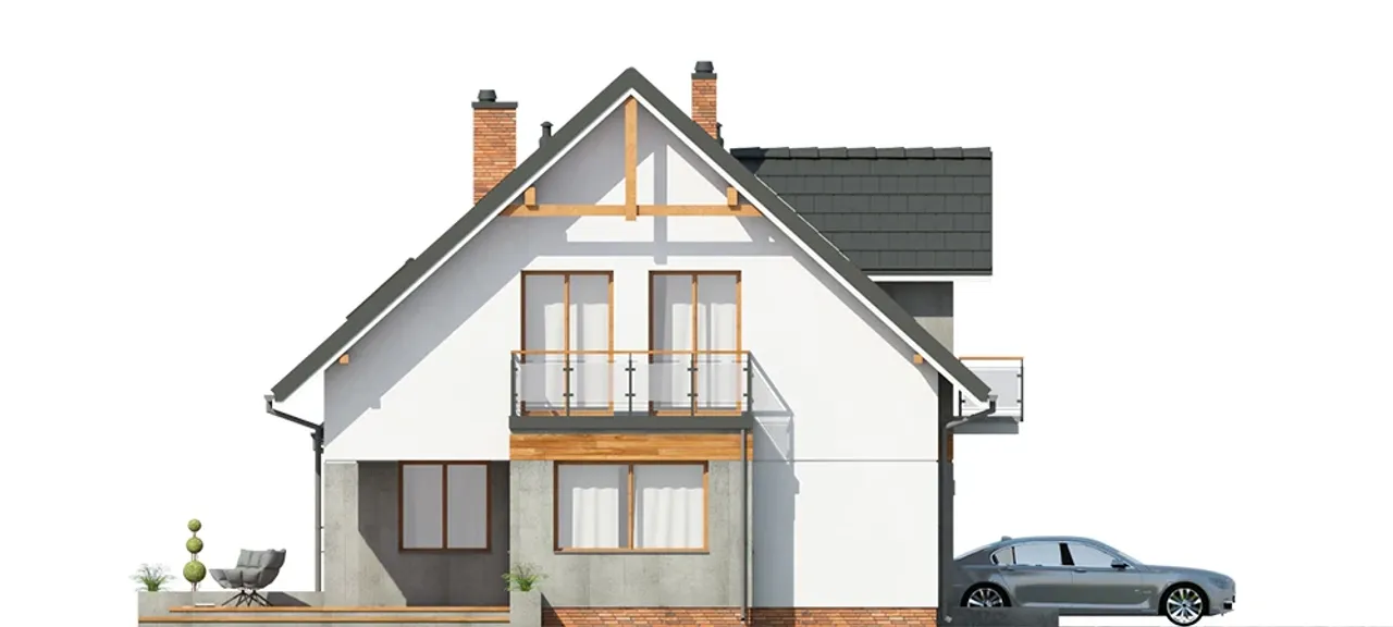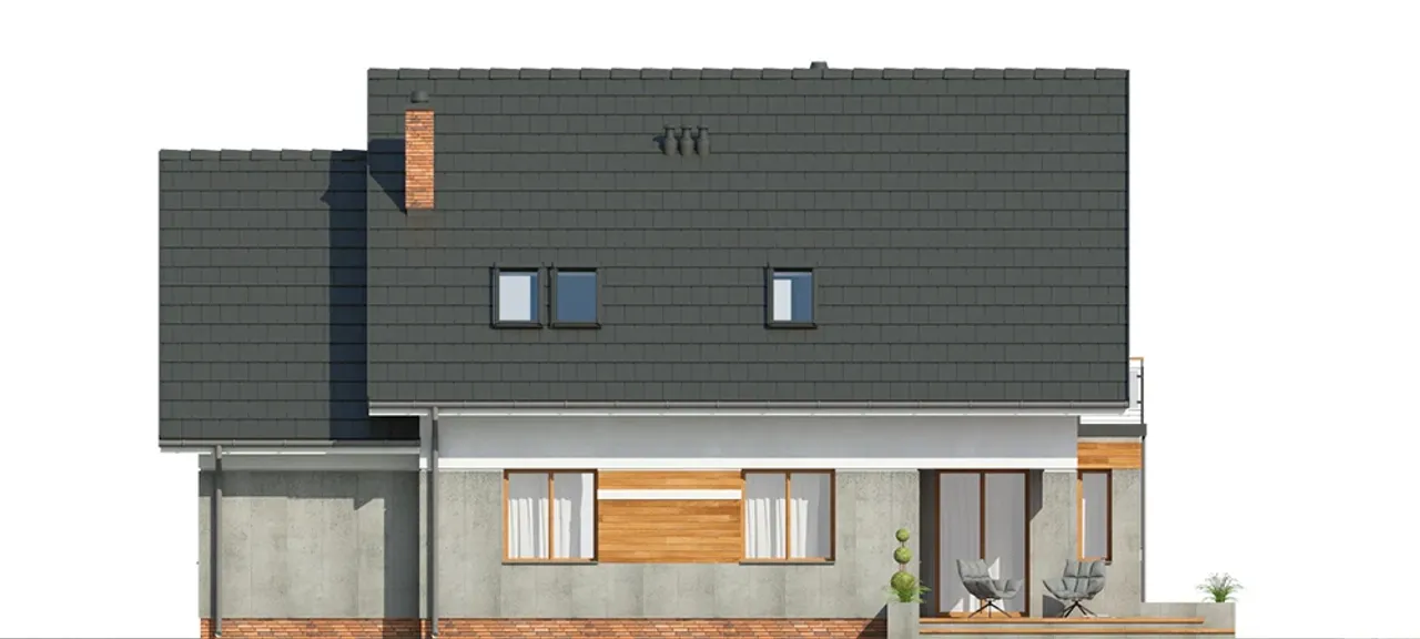 Projekt Accretus I G1 to odpowiedź na potrzeby rodzin, które cenią przestrzeń i elastyczność aranżacji. Dzięki obecności sześciu pokoi, każdy domownik zyska prywatną strefę, a przemyślany parter połączony z poddaszem użytkowym pozwala na łatwe dopasowanie powierzchni do zmieniających się preferencji. W domu przewidziano miejsce na kominek w salonie - to doskonałe źródło przytulnej atmosfery i dodatkowego ciepła podczas chłodniejszych dni.