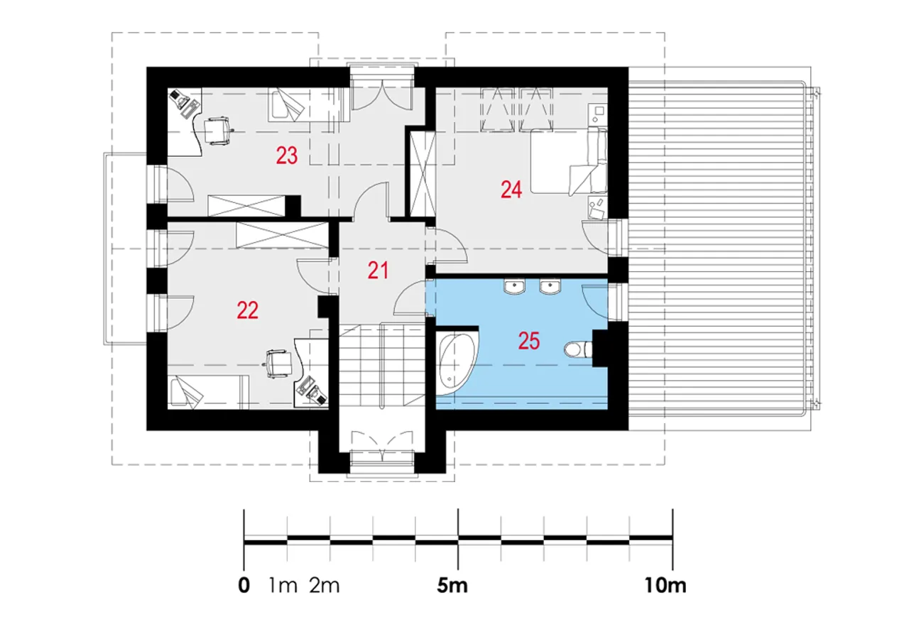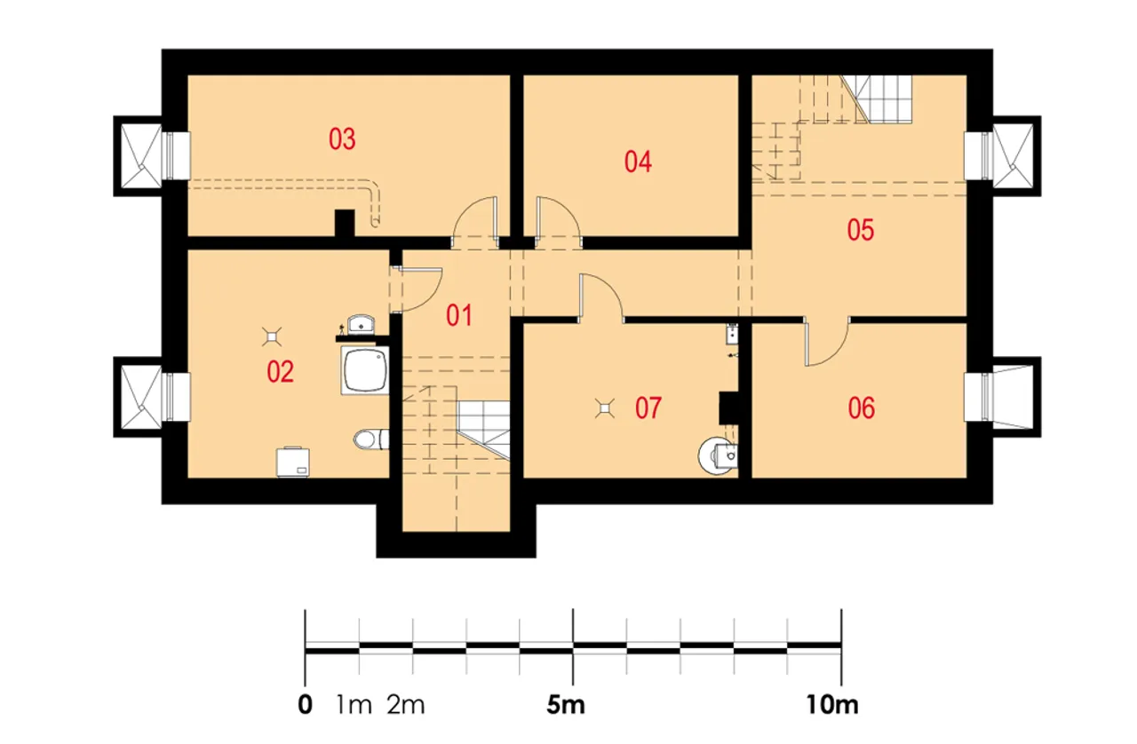 Accuratus I PG1 oferuje jasny i przejrzysty układ na dwóch kondygnacjach oraz podpiwniczenie. Parter z otwartą strefą dzienną umożliwia swobodną aranżację salonu, jadalni z kominkiem oraz dostęp do funkcjonalnej pralni. Schody żelbetowe prowadzą zarówno do części podziemnej, jak i na poddasze, dając komfort komunikacji domownikom. Pięć pokoi pozwala wygospodarować miejsce dla każdego członka rodziny - niezależnie czy to będzie sypialnia, pokój dziecka, gabinet czy gościnny.