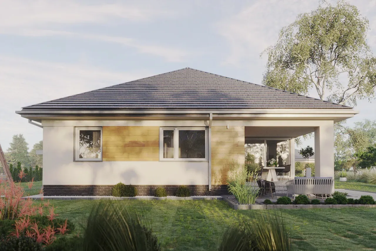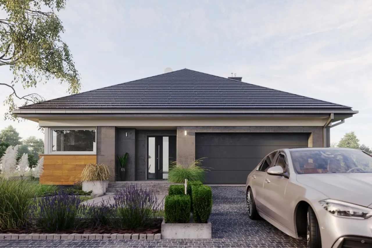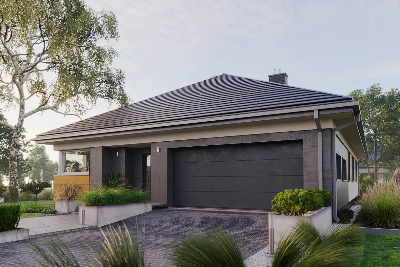 Projekt domu Adela to propozycja, która łączy funkcjonalność z nowoczesnym wyglądem. Przestronne wnętrze zapewnia doskonałe warunki do życia dla rodziny, a duże okna wprowadzają do środka dużo naturalnego światła, co sprawia, że przestrzeń wydaje się jeszcze większa. Estetyka projektu zachwyca prostotą i elegancją, jednocześnie odpowiadając na potrzeby współczesnych rodzin. Układ pomieszczeń został zaplanowany w taki sposób, aby ułatwić codzienne funkcjonowanie i stworzyć przyjazną atmosferę. Warto zwrócić uwagę na praktyczne rozwiązania, które mogą być przydatne dla różnorodnych potrzeb domowników.