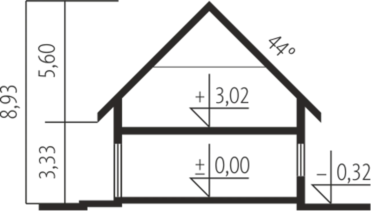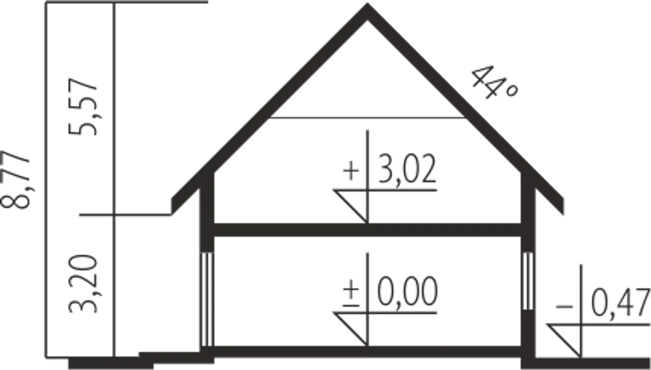 Kąt nachylenia dachu 44 ° |