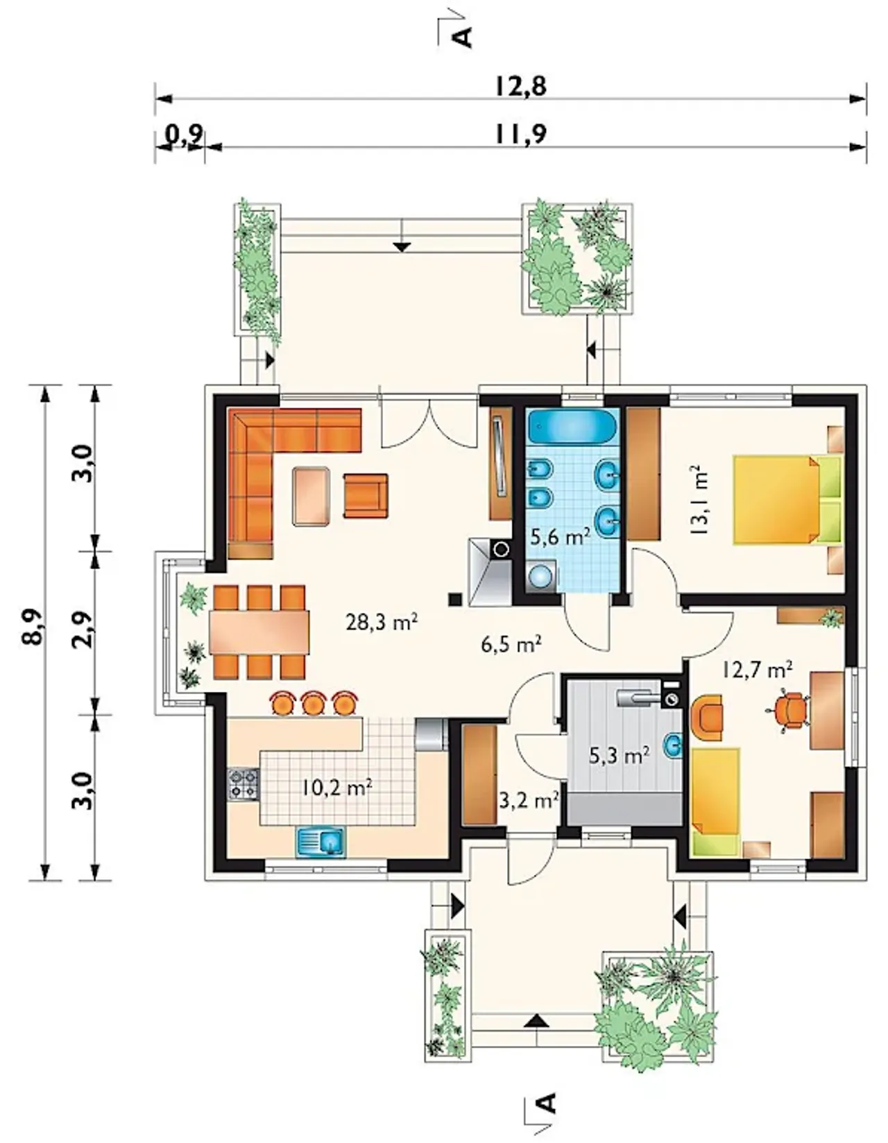 - elewacje - pokazują dokładny wygląd domu od frontu, z tyłu i z boków