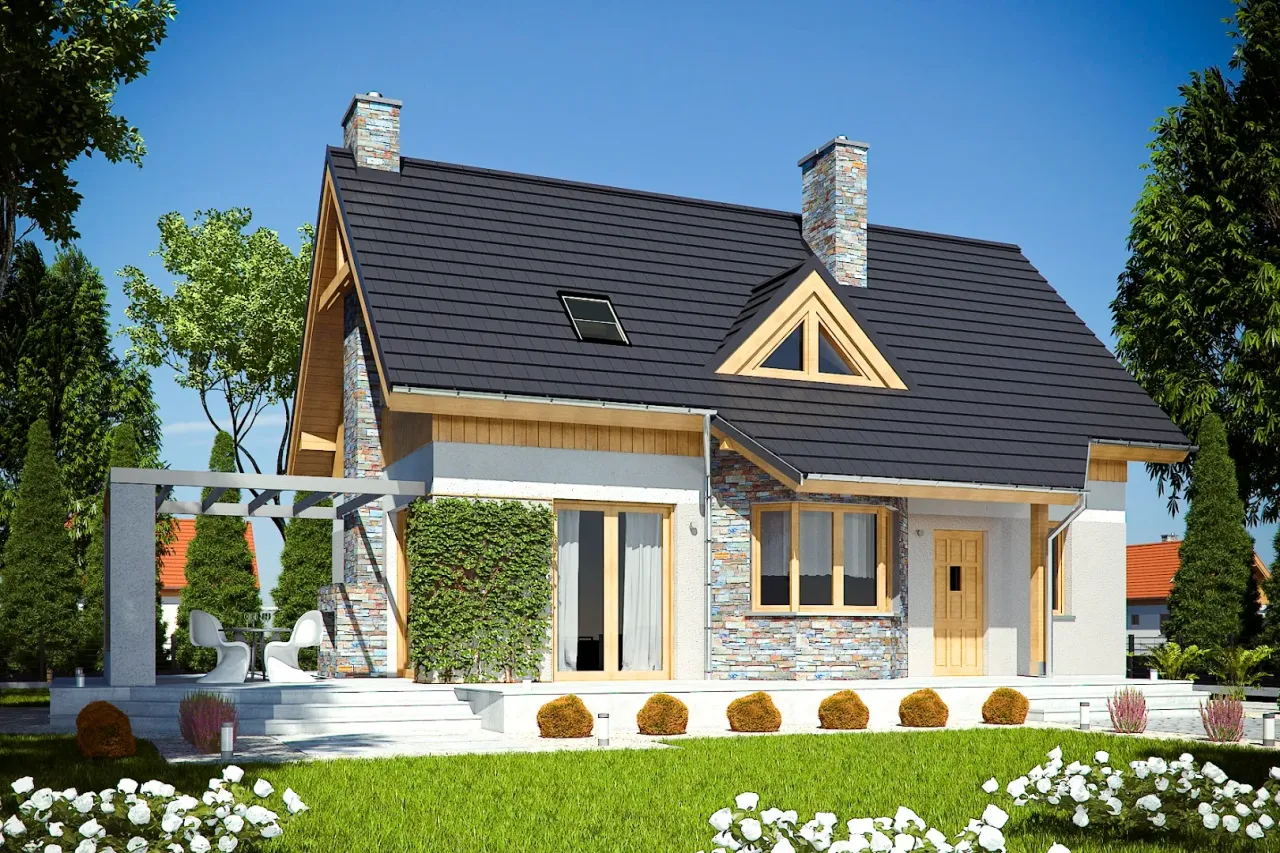 Kupując projekt w technologii murowanej powinieneś budować dom murowany. Zupełna zmiana technologii na szkieletową wymaga przeprojektowania całego budynku ( zmieniają się obciążenia, fundamenty, konstrukcja dachu). Wydamy zgodę na takie przeprojektowanie jednak wiążę się to z dużymi kosztami. Istnieją firmy wykonawcze, które podejmują się zmiany technologii budowy bezpłatnie przy skorzystaniu z ich usług wykonawczych. Zdarza się, że pracownia architektoniczna przygotowuje warianty konkretnego projektu przewidując także inne technologie. Prosimy o sprawdzenie czy istnieje poszukiwana wersja projektu, w zakładce - warianty projektu.