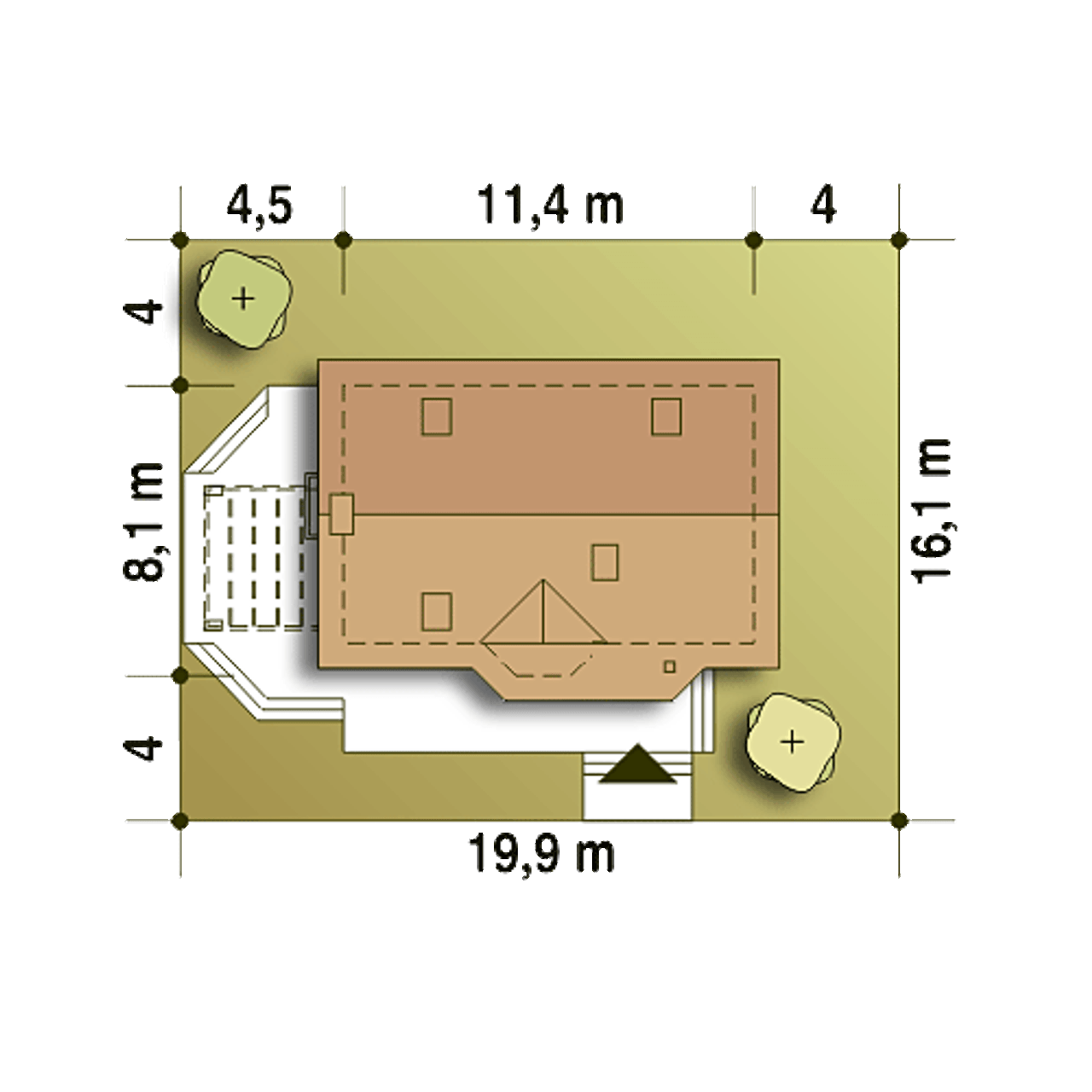 Wypełnij formularz i otrzymaj rysunki w pdf z dokładnymi wymiarami budynku i pomieszczeń (długość, szerokość, wysokość) dla projektu Agatka II trend bez garażu B