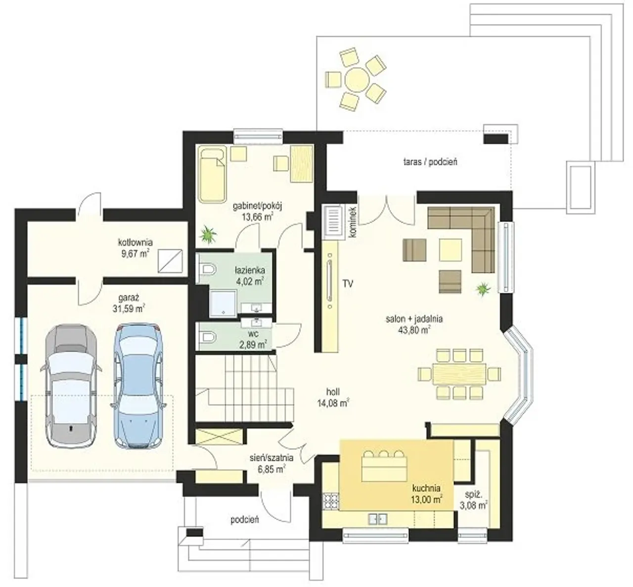 5. Salon + jadalnia | 43,80 m² |