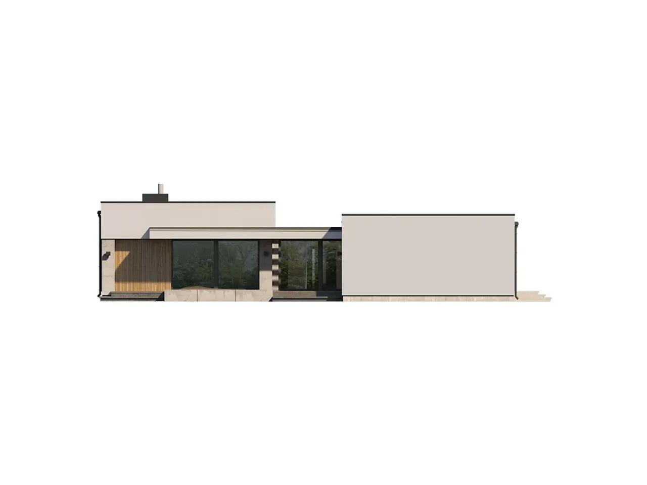 Projekt Domu Agos 2 to intrygująca propozycja dla inwestorów, którzy cenią sobie wyrafinowany styl wielkomiejski i nowoczesny minimalizm. Bryła tego parterowego domu została przykryta płaskim dachem, a na elewacjach zastosowano tynk i kamienne płyty, których surowość została "ocieplona" drewnianą szalówką. Wykorzystane materiały i detale elewacyjne doskonale współgrają, nadając budynkowi elegancki charakter i wielkomiejski klimat nowoczesnych willi.