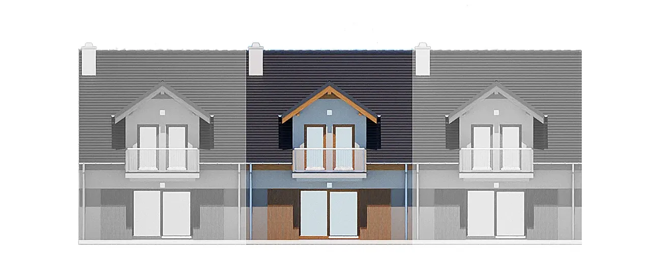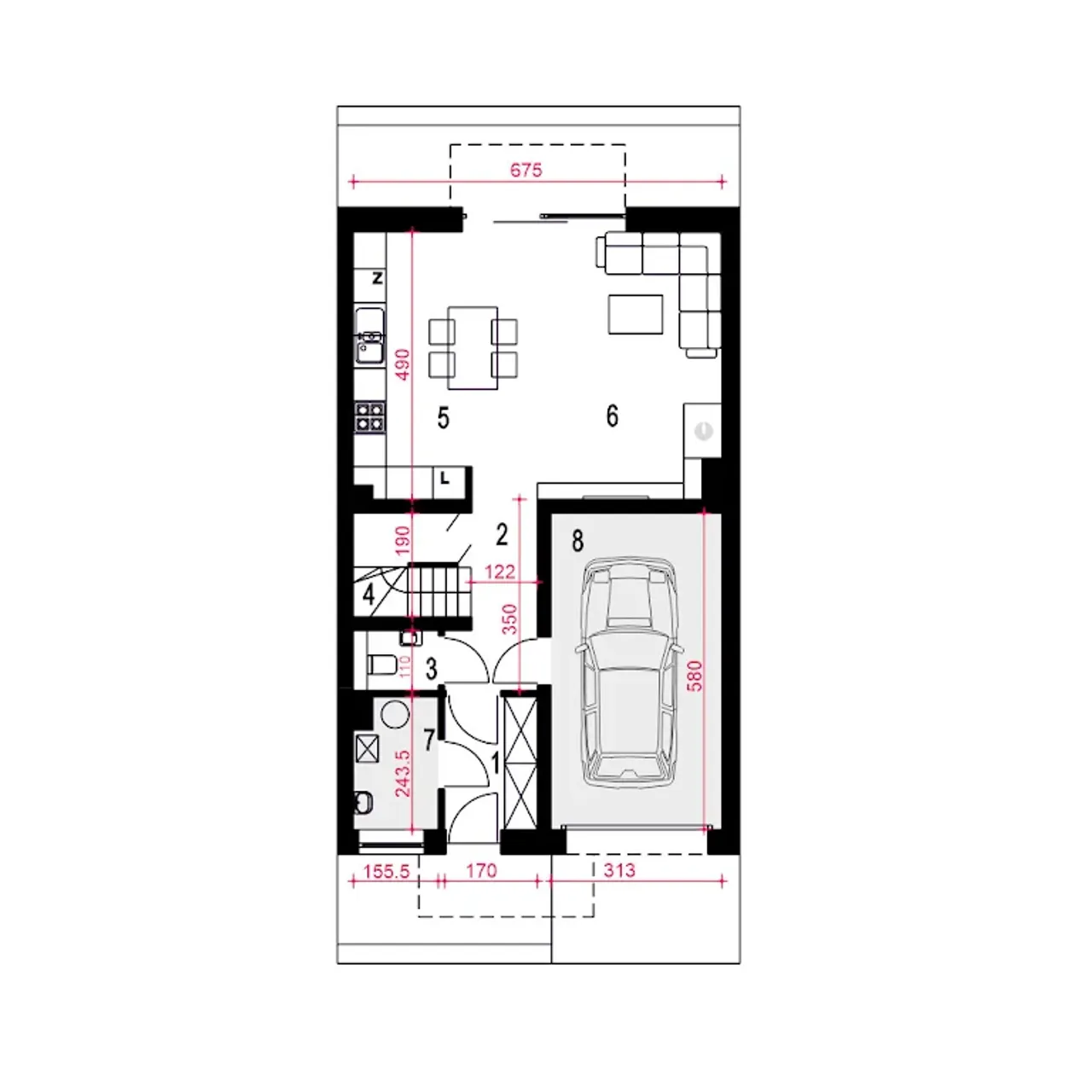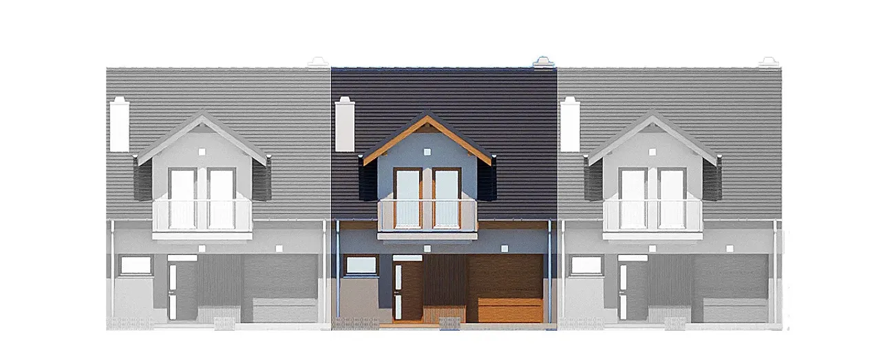 Wypełnij formularz i otrzymaj rysunki w pdf z dokładnymi wymiarami budynku i pomieszczeń (długość, szerokość, wysokość) dla projektu Aida z garażem 1-st. szeregówka A-SZ