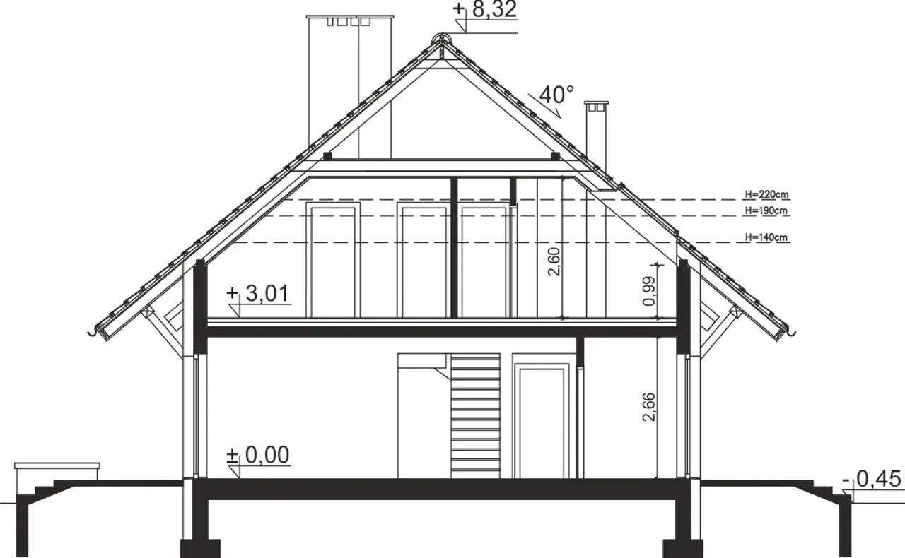 Kąt nachylenia dachu 40 ° |