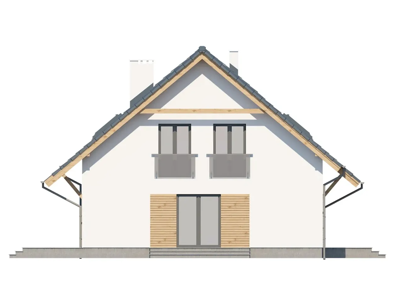 Przestrzeń dzienna została wyposażona w kominek, który podnosi walory estetyczne i umożliwia stworzenie przytulnego klimatu. Duża kotłownia stwarza możliwość instalacji ekonomicznych rozwiązań cieplnych, a wentylacja grawitacyjna z alternatywą rekuperacji podnosi efektywność energetyczną domu. Garaż z wyjazdem od frontu i praktyczna spiżarnia sprawią, że codzienna organizacja przestrzeni staje się wyjątkowo prosta i wygodna.