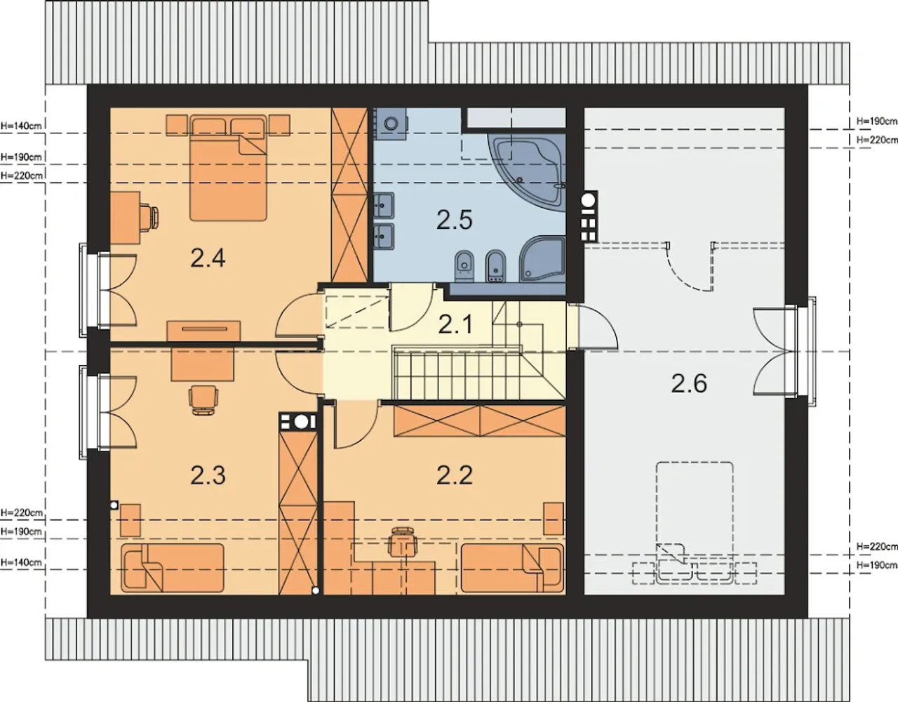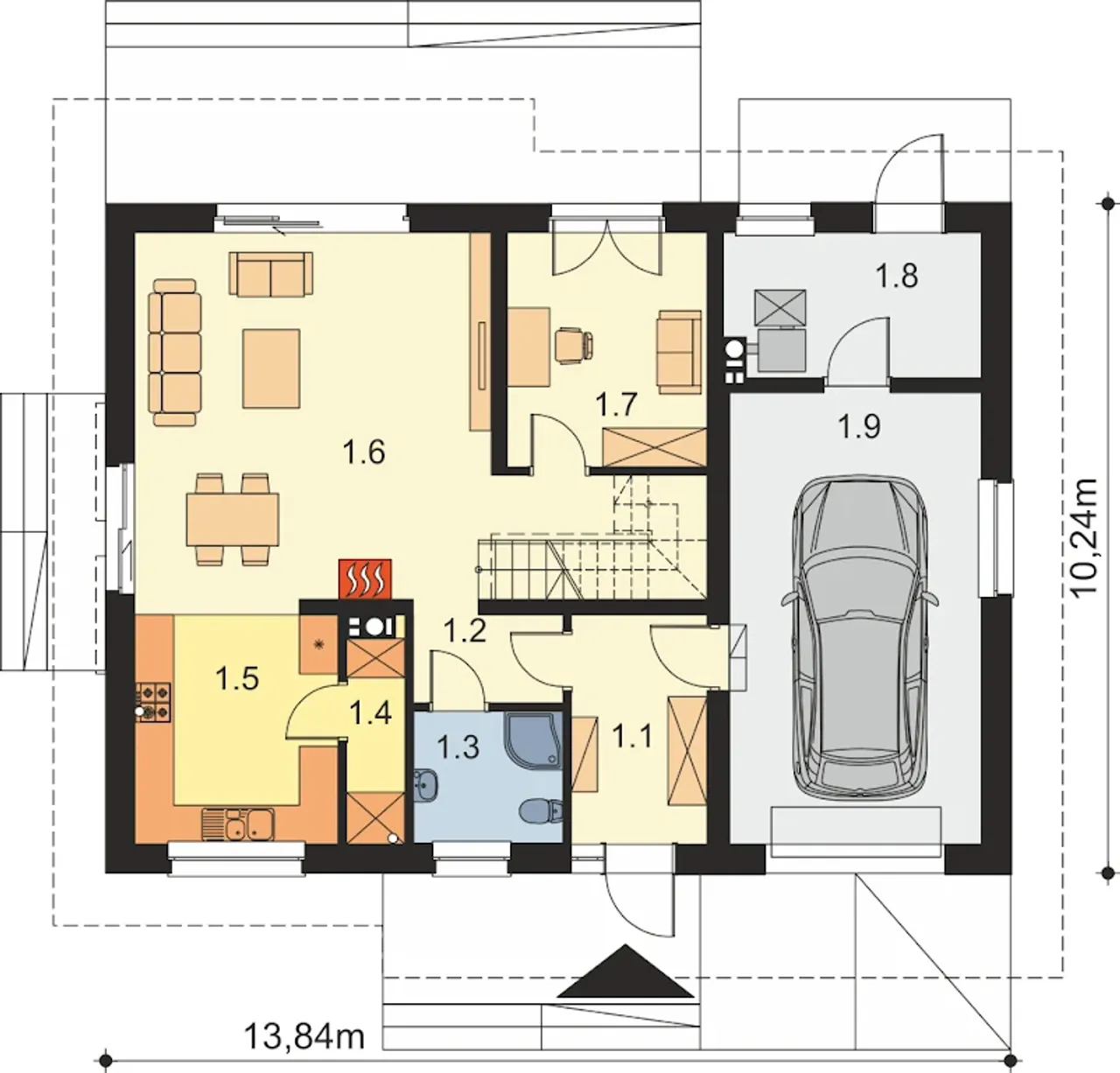 Ten projekt jest idealny dla rodzin poszukujących komfortowego domu ze strychem, dużą kotłownią, spiżarnią w kuchni oraz pojedynczym garażem w bryle budynku. Przemyślany rozkład pokoi oraz użycie nowoczesnych materiałów gwarantują trwałość i wygodę na lata.