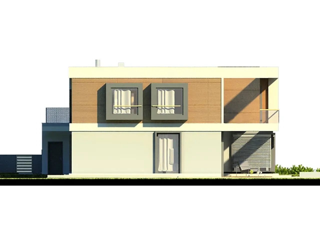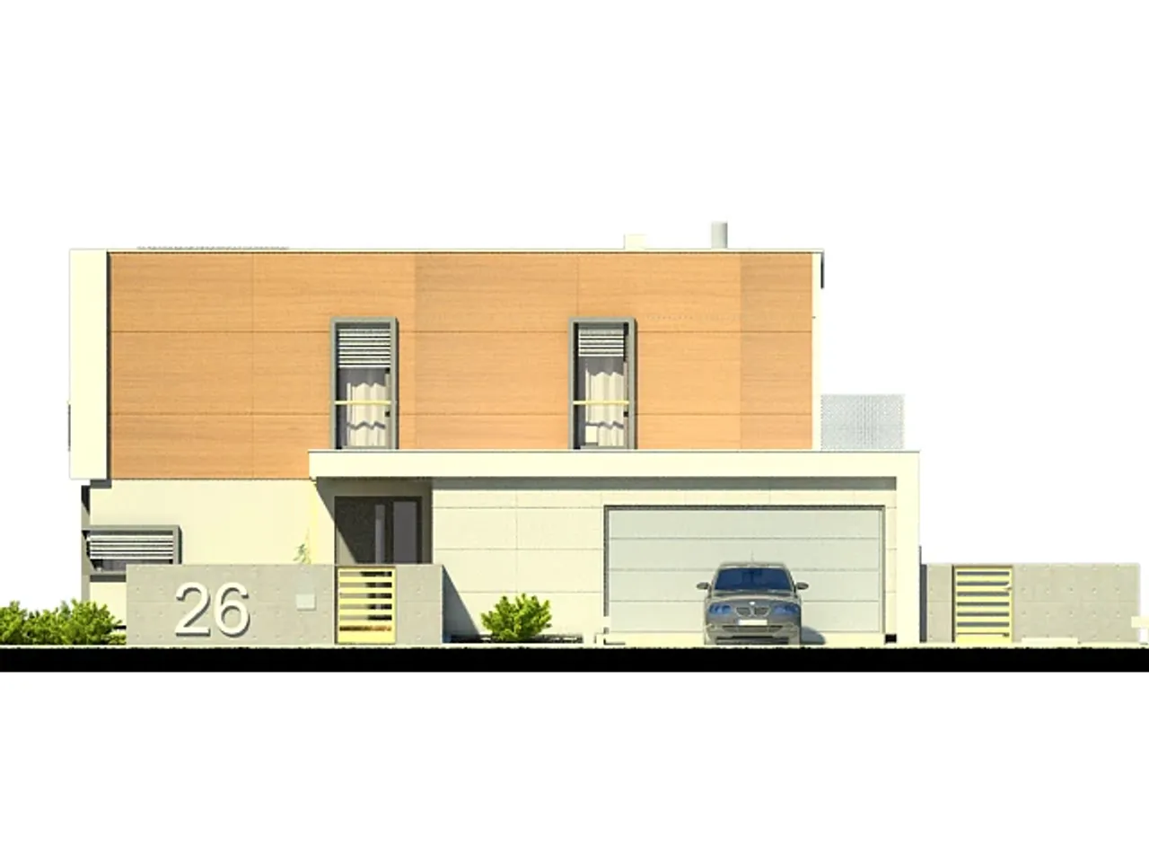 Projekt domu AJR 26 A2 to kwintesencja nowoczesnego designu połączona z funkcjonalnością, która spełni oczekiwania nawet najbardziej wymagających. Ten piętrowy dom jednorodzinny zachwyca swoją elegancką bryłą i płaskim dachem, co czyni go idealnym wyborem dla miłośników współczesnej architektury. Zewnętrzna elewacja łączy w sobie tynk strukturalny z okładziną drewnopodobną, tworząc ciepły, ale i nowoczesny wygląd.