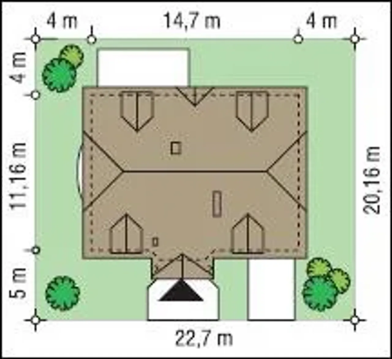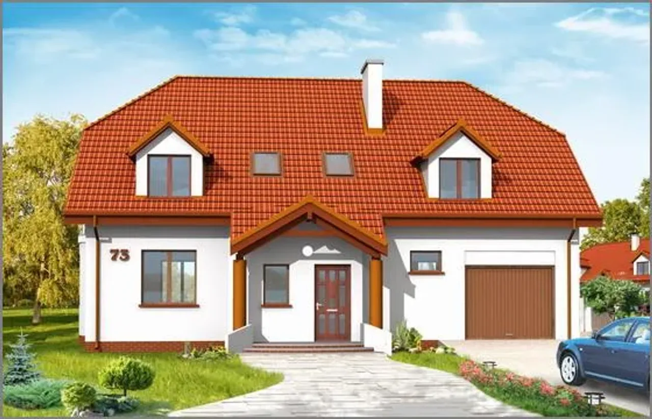 Projekt domu Akacjowy to budynek parterowy z poddaszem użytkowym przykrytym wielospadowym dachem. Jest to budynek niepodpiwniczony, z jednostanowiskowym garażem. Całkowita powierzchnia użytkowa wynosi imponujące 184 m2, a budynek może być posadowiony na działce o powierzchni od 450 m2.