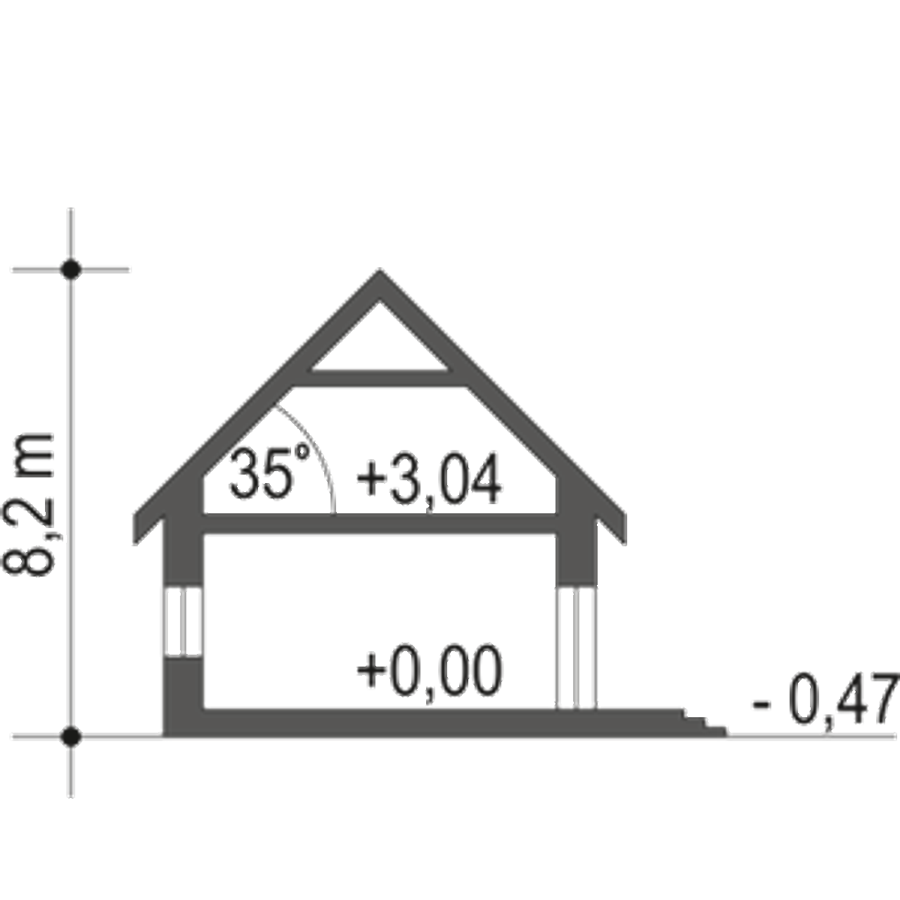 Wypełnij formularz i otrzymaj rysunki w pdf z dokładnymi wymiarami budynku i pomieszczeń (długość, szerokość, wysokość) dla projektu Aksel z garażem 1-st. A na paliwo stałe