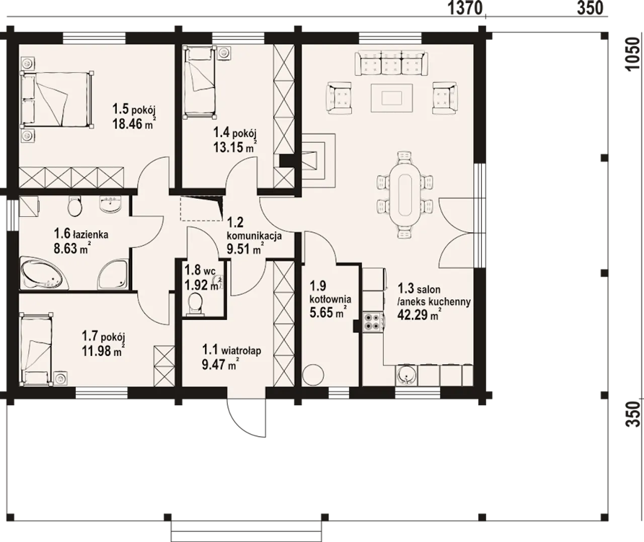 Wypełnij formularz i otrzymaj rysunki w pdf z dokładnymi wymiarami budynku i pomieszczeń (długość, szerokość, wysokość) dla projektu Alamowo 7 dw