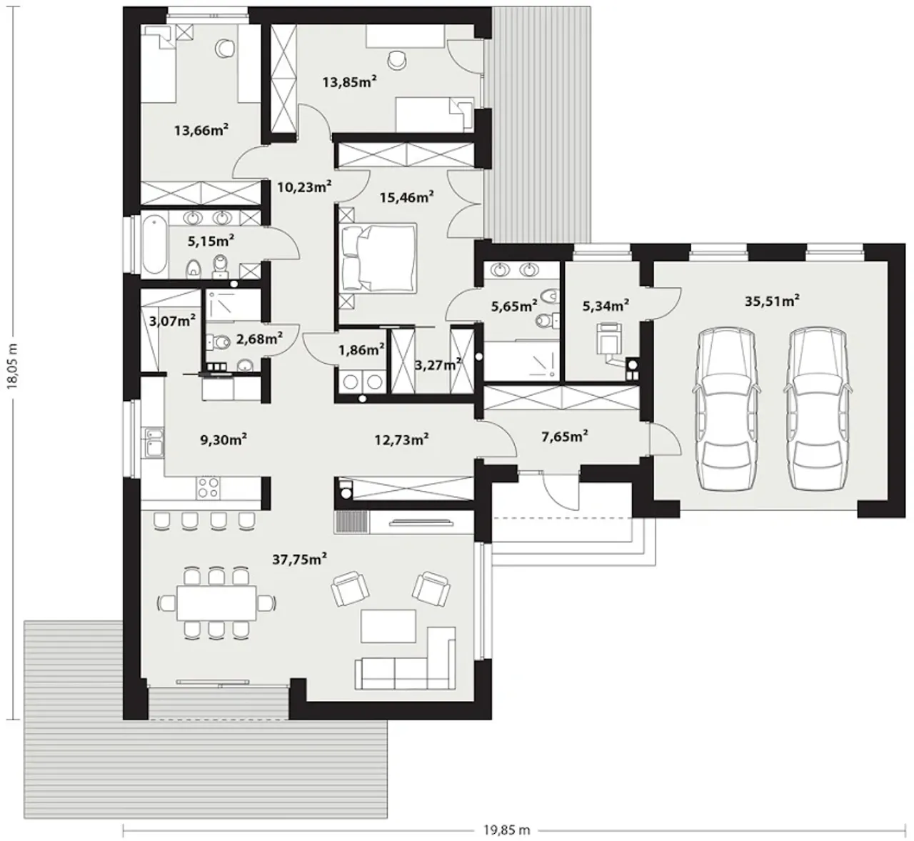 Wypełnij formularz i otrzymaj rysunki w pdf z dokładnymi wymiarami budynku i pomieszczeń (długość, szerokość, wysokość) dla projektu Alani 2