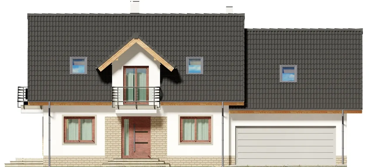 Projekt domu Albus 2 to dom z poddaszem z wbudowanym garażem dwustanowiskowym. Na parterze domu znajdują się wiatrołap, przestronny salon z jadalnią, kuchnia ze spiżarnią, gabinet, kotłownia oraz wc. Na poddaszu mieszczą się trzy wygodne sypialnie, pokój rekreacyjny oraz ogólnodostępna łazienka. Projekt domu Albus 2 jest przestronny i funkcjonalny.