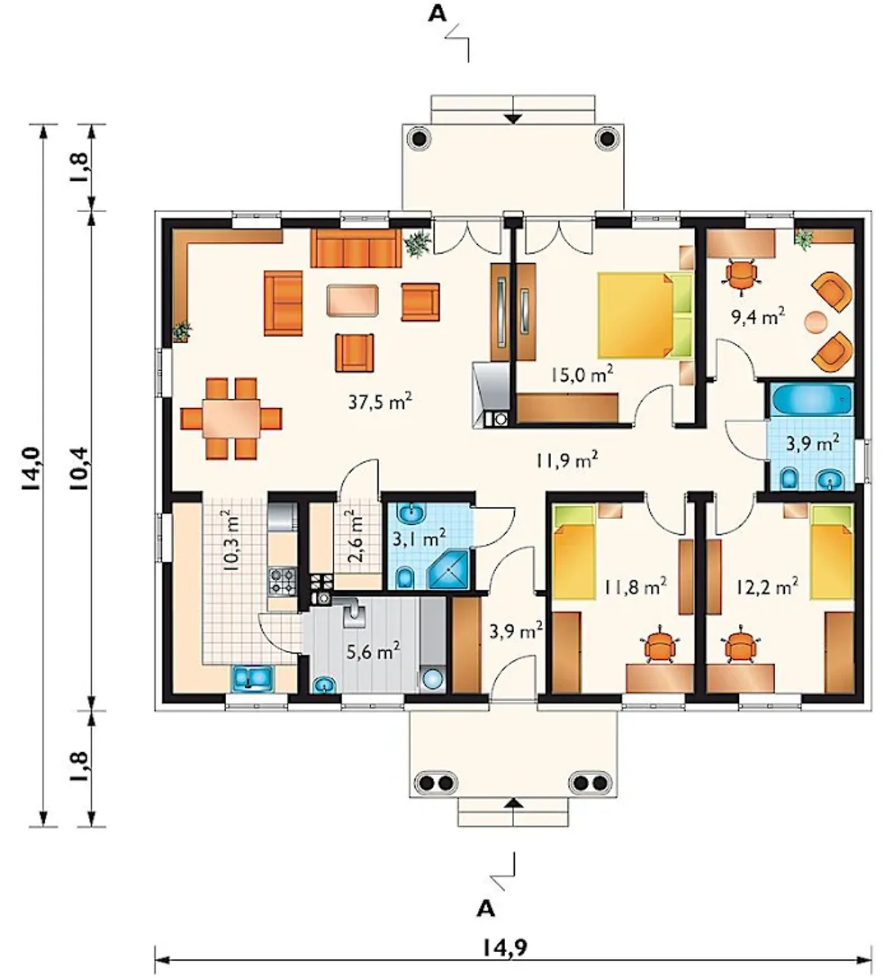 - elewacje - pokazują dokładny wygląd domu od frontu, z tyłu i z boków