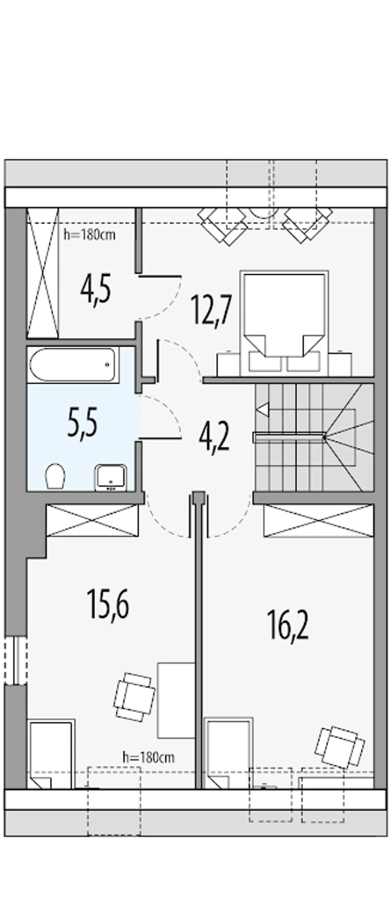 Wypełnij formularz i otrzymaj rysunki w pdf z dokładnymi wymiarami budynku i pomieszczeń (długość, szerokość, wysokość) dla projektu Alfa - bliźniak