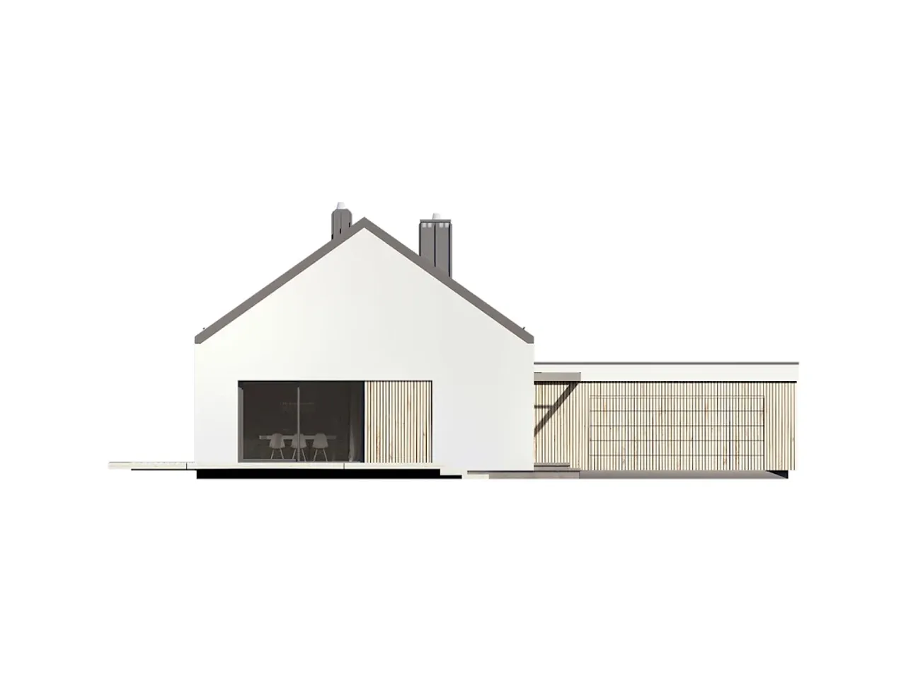 Garaż przyklejony do bryły budynku umożliwia szybkie przejście do wnętrza nawet podczas złej pogody. Praktyczna spiżarnia przy kuchni pozwala z łatwością przechowywać zapasy, a osobna pralnia usprawnia codzienną organizację domu. Komfort cieplny zapewnia wybór ogrzewania - zarówno gazowego, jak i na paliwo stałe, co pozwala dopasować dom do indywidualnych preferencji i dynamicznych cen energii.
