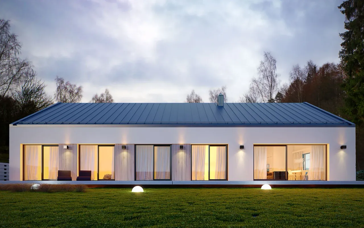 Projekt Alfi 2 to rozwiązanie dla osób, które cenią wygodę użytkowania i ekonomię codziennego życia. Parterowa konstrukcja z żelbetowym stropem ogranicza schody i zapewnia swobodę poruszania się - szczególnie docenią to rodziny z małymi dziećmi lub seniorami. Przemyślany układ pięciu pokoi daje możliwość aranżacji komfortowej sypialni, pokoju dziecięcego, gabinetu czy pokoju dla gości.