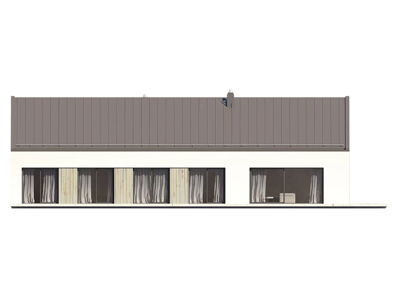 Projekt domu Alfi 3 został opracowany z wykorzystaniem sprawdzonych i trwałych materiałów. Ściany z ceramicznego pustaka, solidnie zaizolowane styropianem, zapewniają korzystny mikroklimat przez cały rok i ograniczają straty ciepła. Minimalistyczna, nowoczesna bryła dachu dwuspadowego nadaje budynkowi elegancki, ponadczasowy charakter, a wykończenie elewacji tynkiem i szalówką doskonale wpisuje się w aktualne trendy architektoniczne.