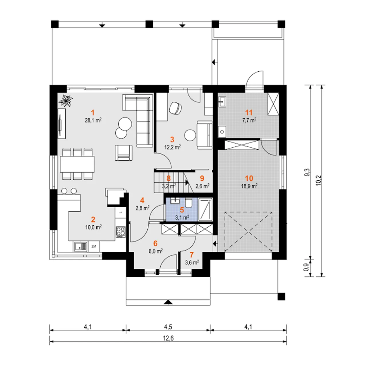 7. Pomieszczenie gospodarcze | 3,60 m² |