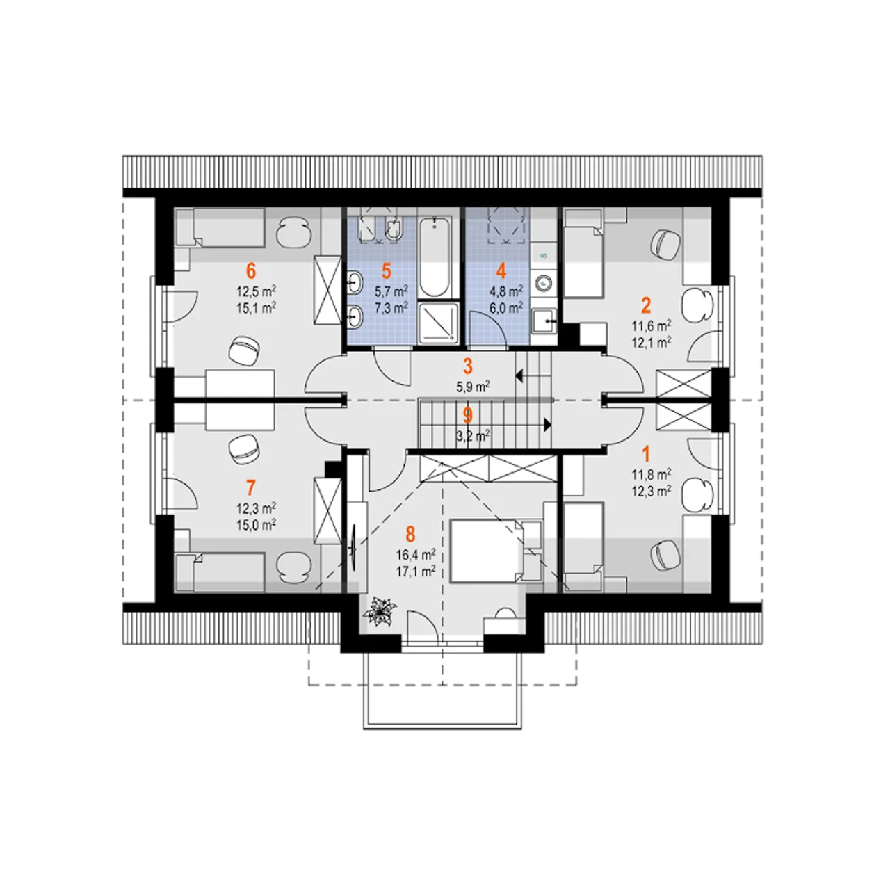 Wypełnij formularz i otrzymaj rysunki w pdf z dokładnymi wymiarami budynku i pomieszczeń (długość, szerokość, wysokość) dla projektu Alicja Atu