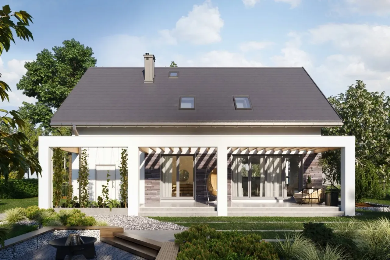 - elewacje - pokazują dokładny wygląd domu od frontu, z tyłu i z boków