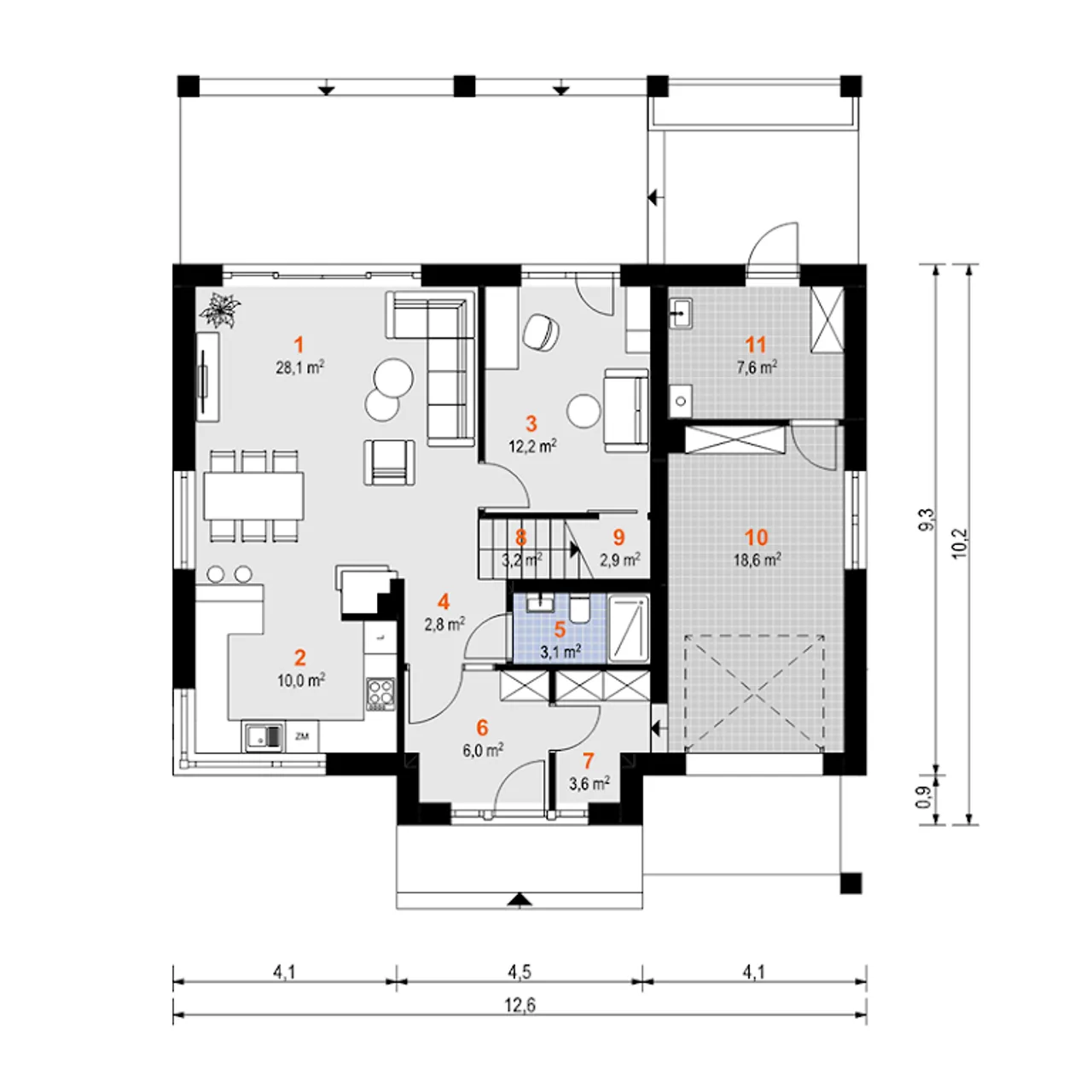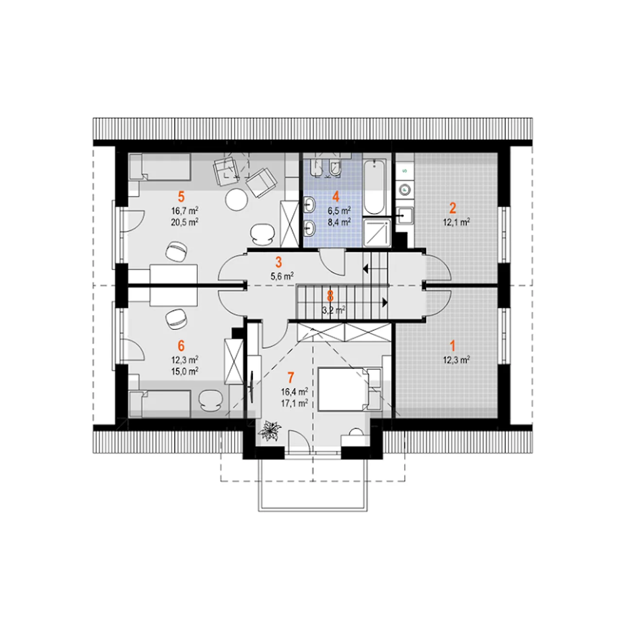 Wypełnij formularz i otrzymaj rysunki w pdf z dokładnymi wymiarami budynku i pomieszczeń (długość, szerokość, wysokość) dla projektu Alicja Rex