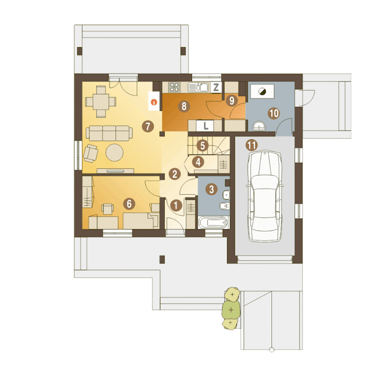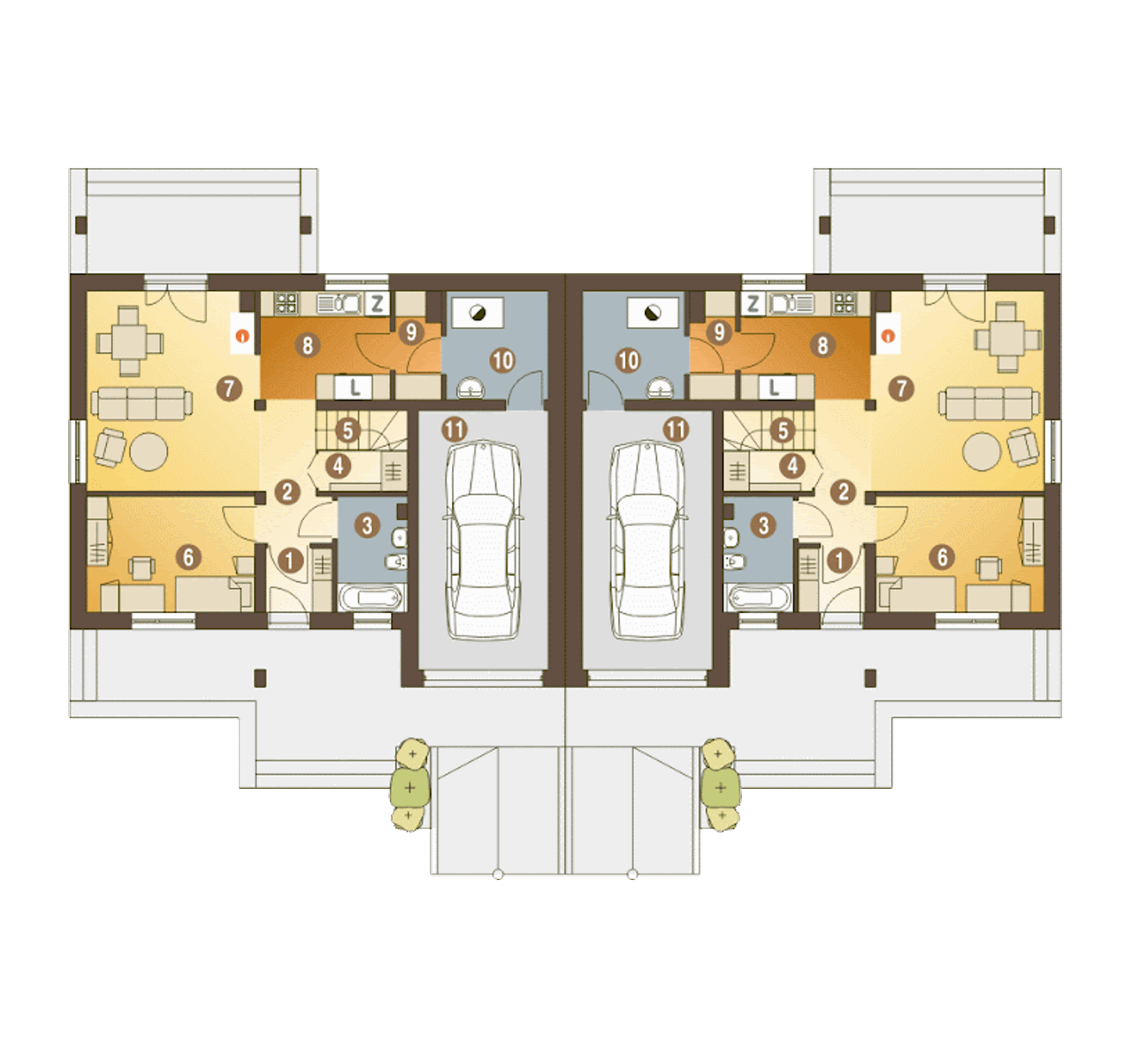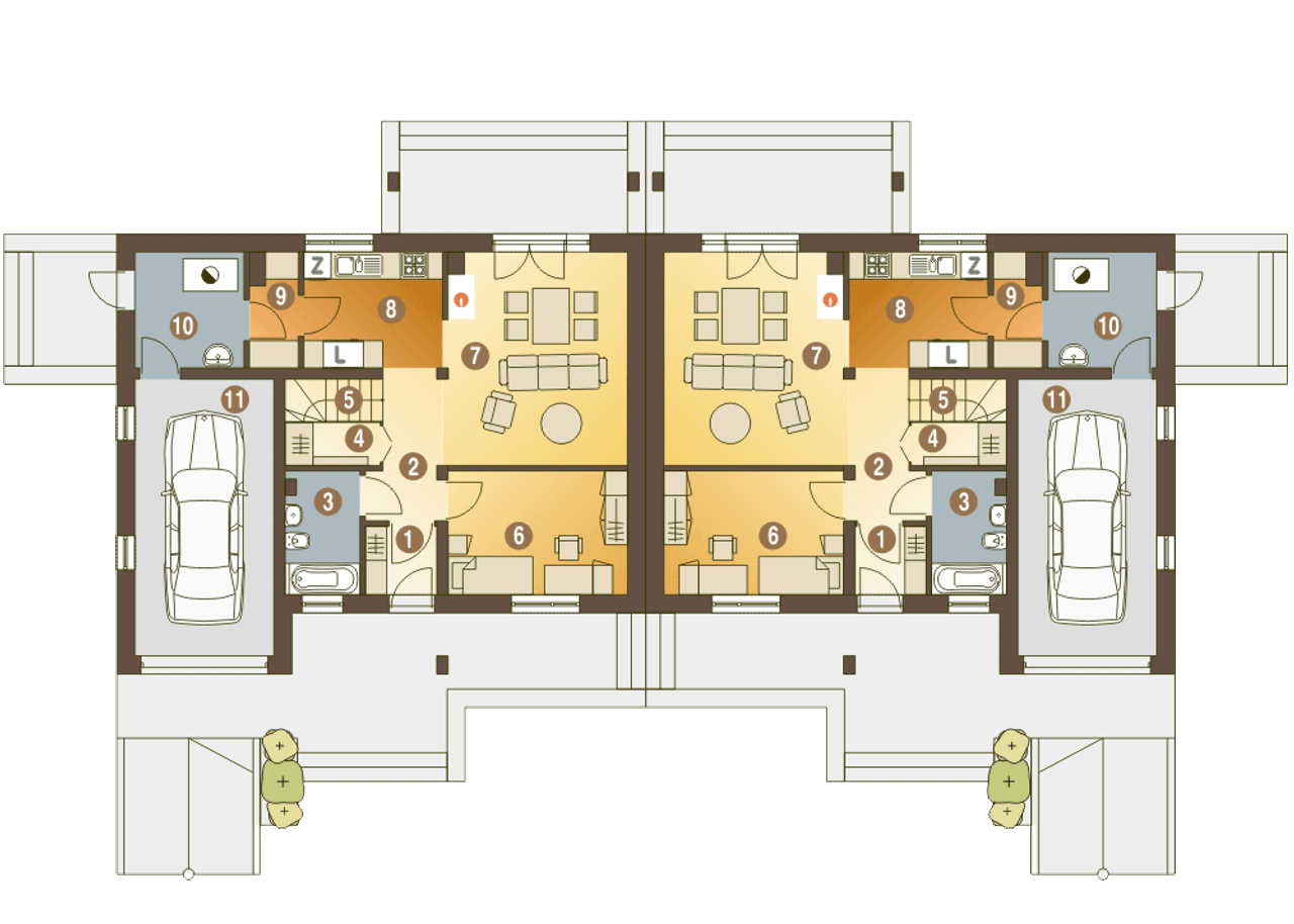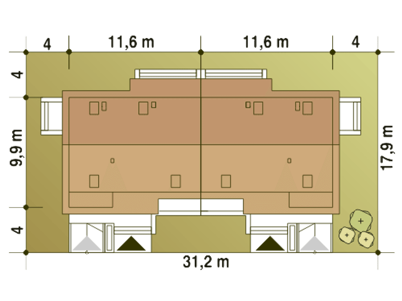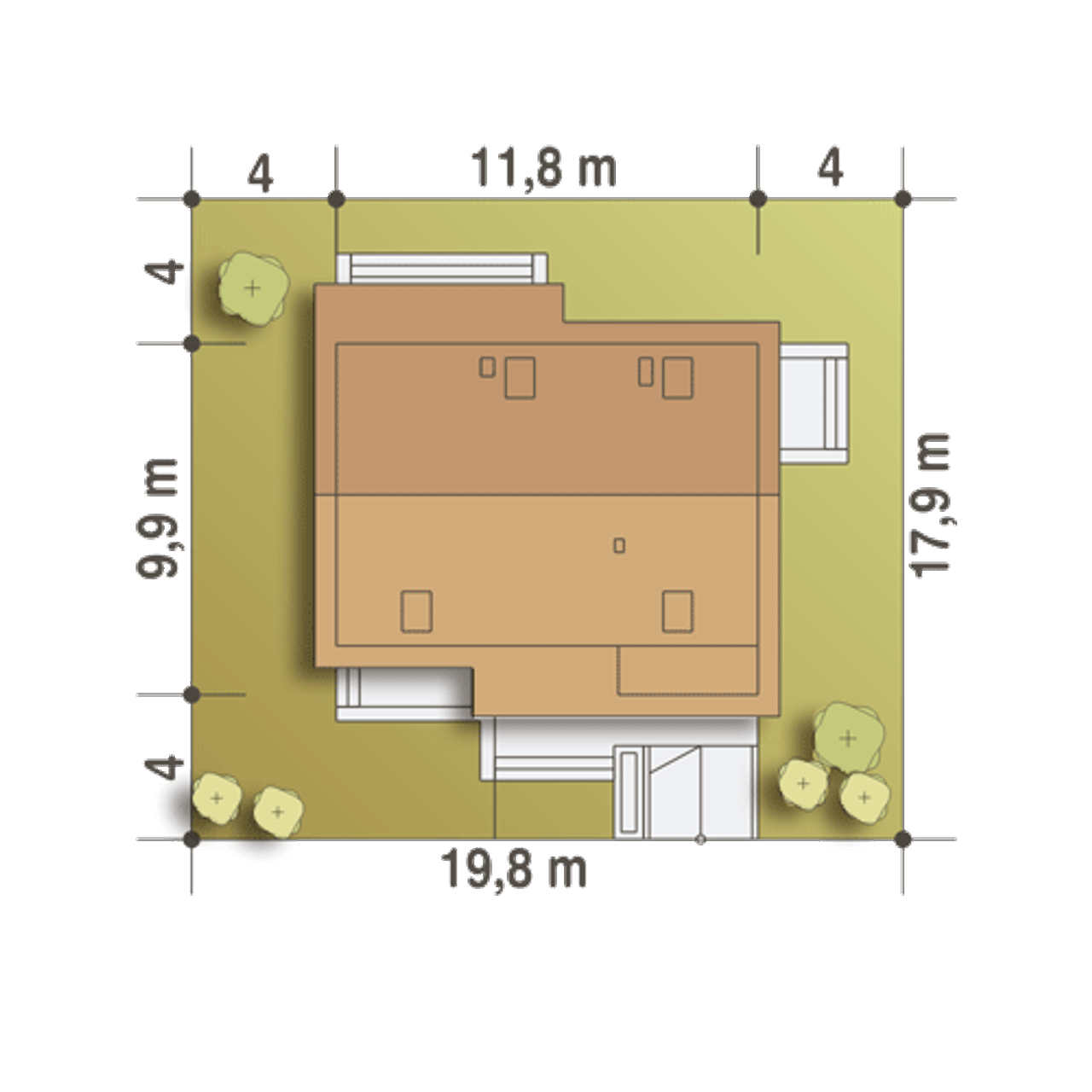 Wypełnij formularz i otrzymaj rysunki w pdf z dokładnymi wymiarami budynku i pomieszczeń (długość, szerokość, wysokość) dla projektu Alka II z garażem 1-st. bliźniak A-BL2
