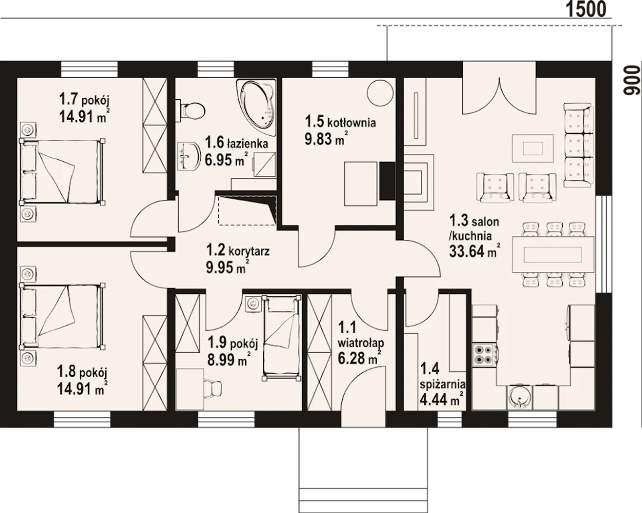 - opisu architektonicznego zawierającego m.in. opis przyjętych rozwiązań, zestawienia powierzchni (użytkowej, zabudowy, netto), kubatury oraz powierzchni poszczególnych pomieszczeń