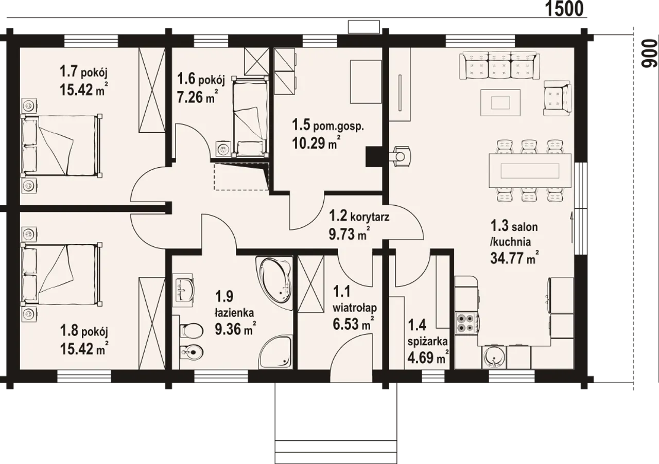 - opisu architektonicznego zawierającego m.in. opis przyjętych rozwiązań, zestawienia powierzchni (użytkowej, zabudowy, netto), kubatury oraz powierzchni poszczególnych pomieszczeń