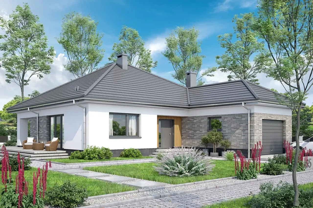 Zamów gotowy projekt domu Aloes G1 już dziś i postaw na sprawdzone rozwiązanie dla Twojej rodziny! Wykorzystaj nowoczesny, parterowy projekt z garażem i kominkiem - zyskaj dom, w którym poczujesz się bezpiecznie i wygodnie przez cały rok.