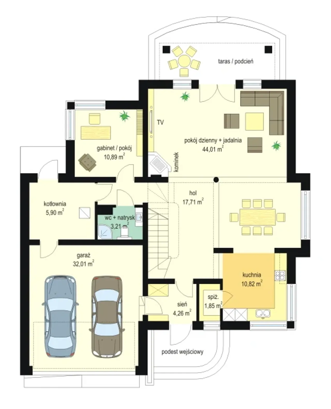 5. Pokój dzienny + jadalnia | 44,01 m² |