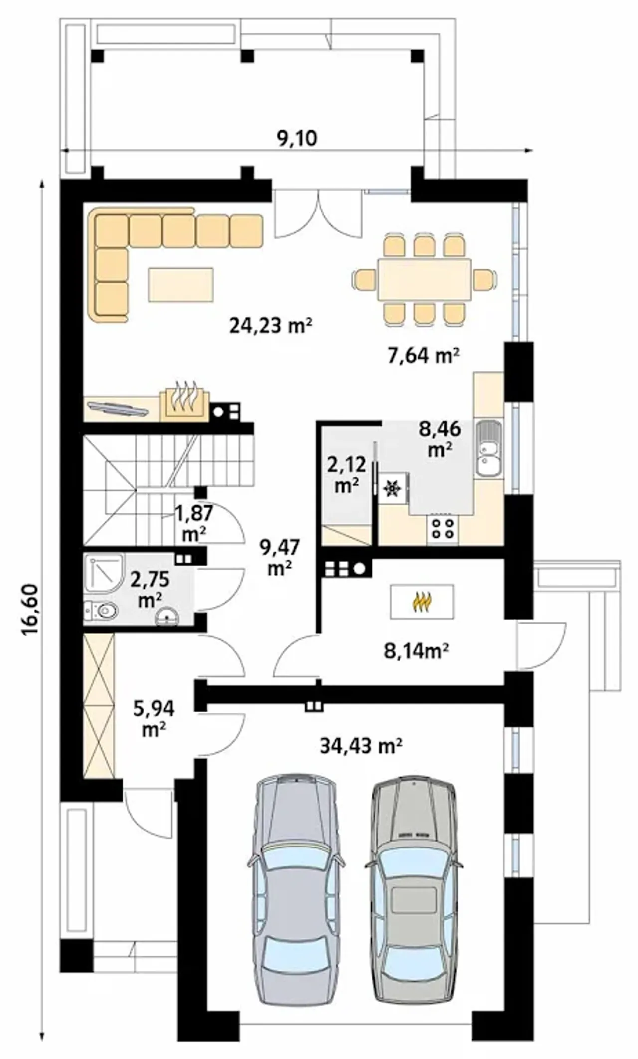 | 9. Garaż | 34,43 m² |
