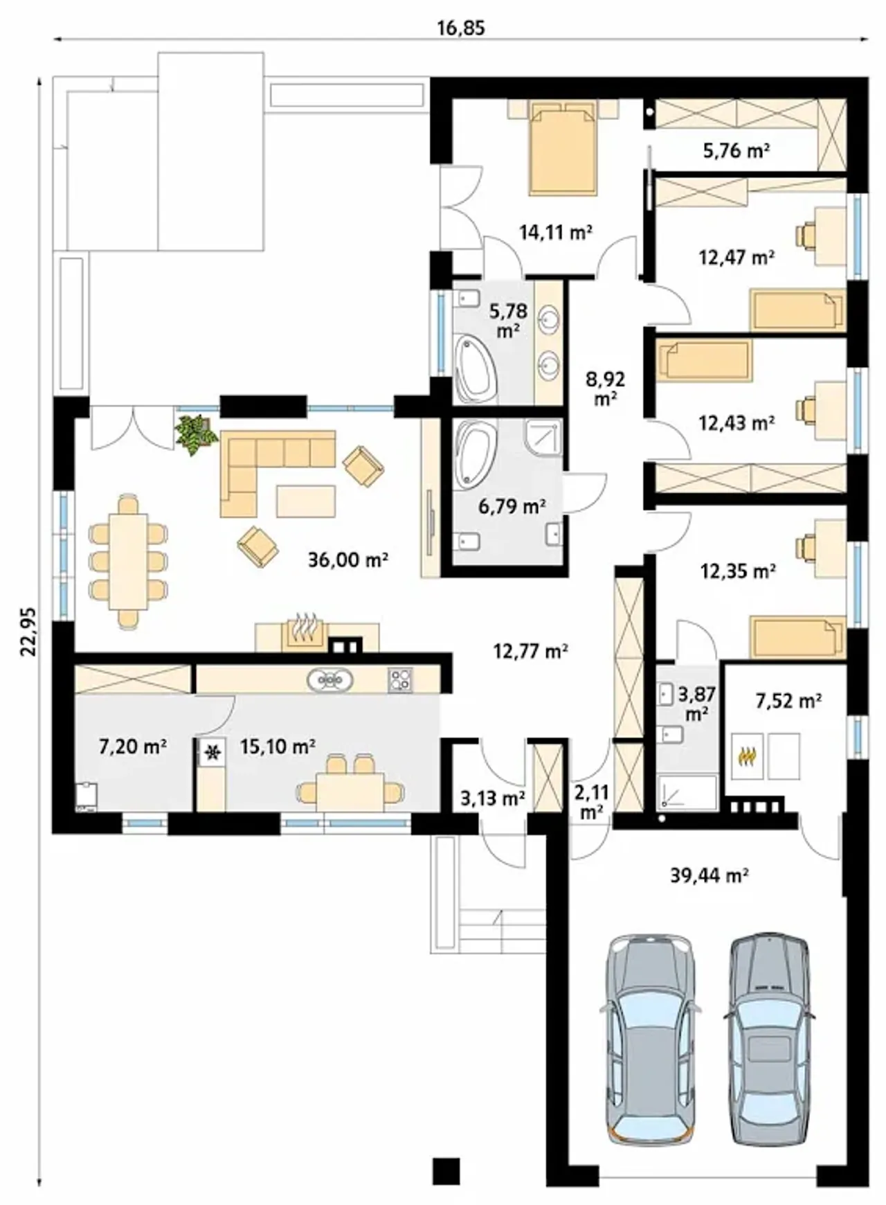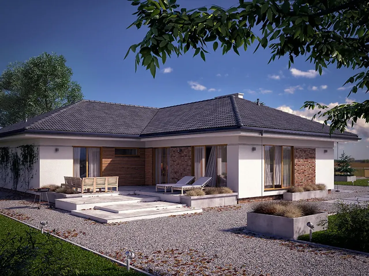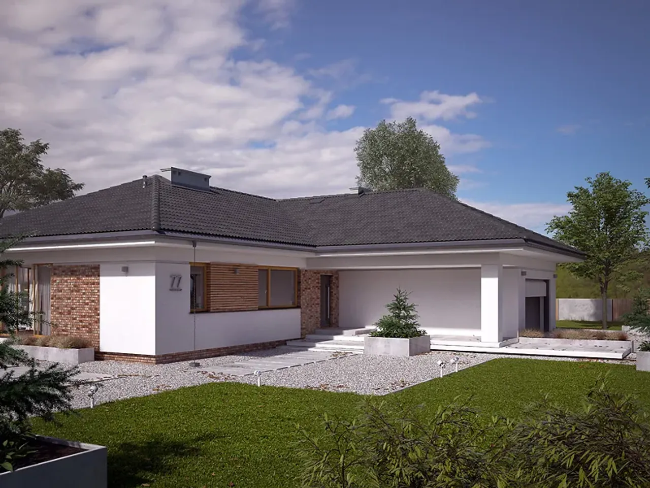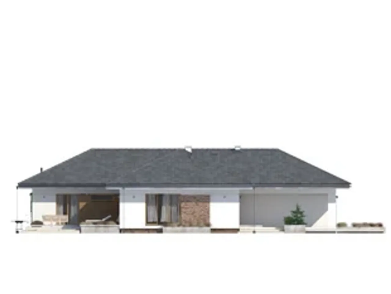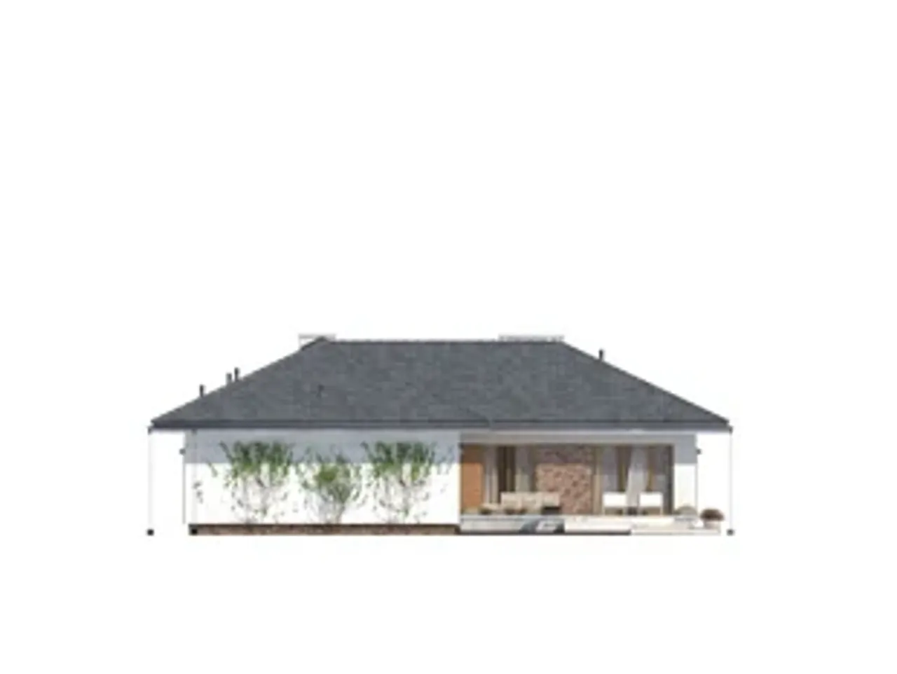 Projekt domu "Ambrozja 10 CE" prezentuje się naprawdę rewelacyjnie - prosta, ale spójna architektura, z przemyślanym rozkładem pomieszczeń, co jest kluczowe dla funkcjonalności codziennego życia. Zaskakuje przestronny salon z wyjściem na taras, co niewątpliwie zapewni wiele przestrzeni do relaksu i spotkań z rodziną i przyjaciółmi. Kuchnia połączona z jadalnią to doskonałe rozwiązanie dla osoby, która ceni sobie otwarte i jasne pomieszczenia.